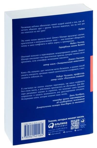 Professional psychologist and negotiator Daniel Shapiro, using the latest data from conflictology, sociology and psychology, based on his own experience of participation in the settlement of conflicts on an international scale, in the book "On Emotions" tells about the mechanisms of emergence, development and resolution of such conflicts. The author is convinced that even the most irreconcilable disagreements can be overcome. He familiarizes readers with a system of techniques he has developed to make it possible.