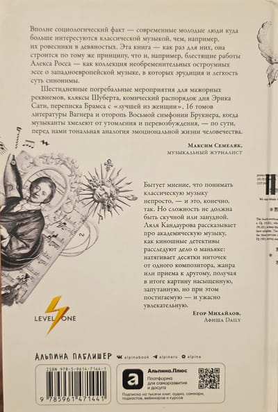 Listening to music is the most interesting thing in the world. You will see this for yourself when reading the book by music journalist and popular lecturer Lyalya Kandaurova. Instead of a boring and dry list of facts, you have a real concert subscription: the author talks about the 600-year history of music in such a way that unfamiliar pieces become close, and familiar ones bring even more pleasure. You will be able to use QR codes to listen to the melodies in question, so that the text comes to life, plays and opens up in a completely different way.
