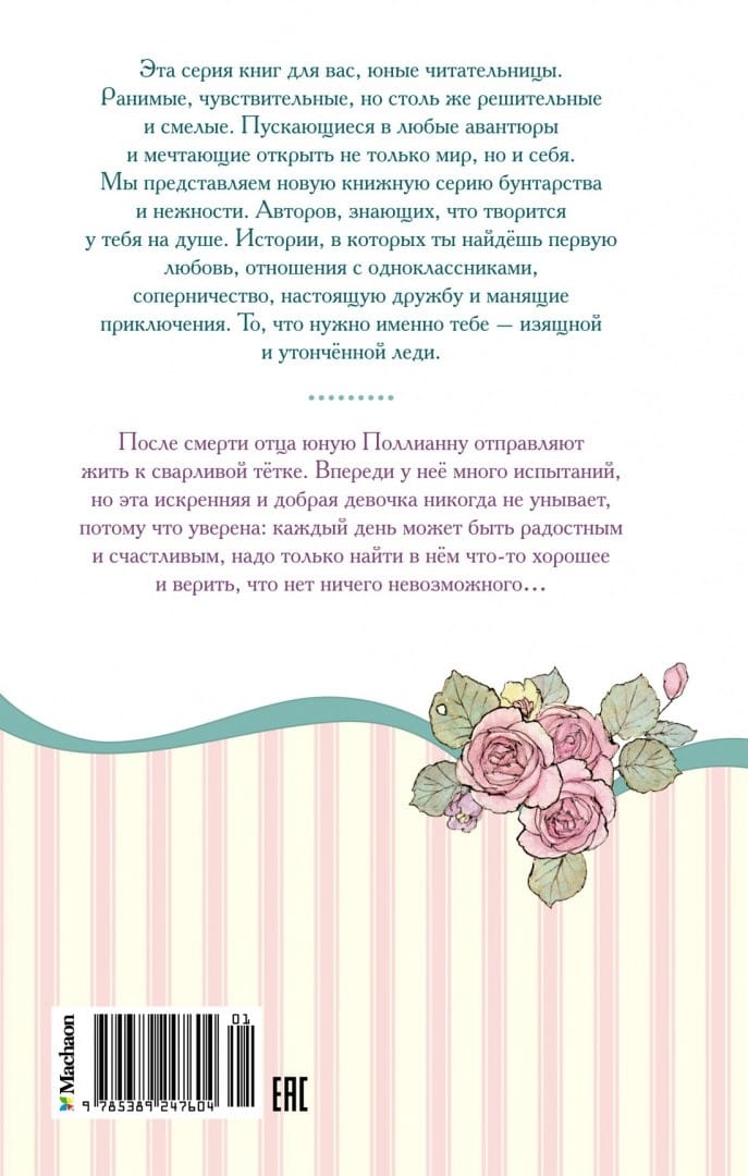 This book series is for you, young female readers. Vulnerable, sensitive, but equally determined and courageous. You are ready for any adventure and dream of discovering not only the world, but also yourself. We present a new book series of rebellion and tenderness. Authors who know what's going on in your heart. Stories in which you will find first love, relationships with classmates, rivalry, true friendship and tantalizing adventures. Just what you need - a graceful and sophisticated lady. After the death of her father, young Pollyanna is sent to live with her grumpy aunt. Ahead of her there are many trials, but this sincere and kind girl is never discouraged, because she is sure that every day can be joyful and happy, you just need to find something good in it and believe that nothing is impossible....