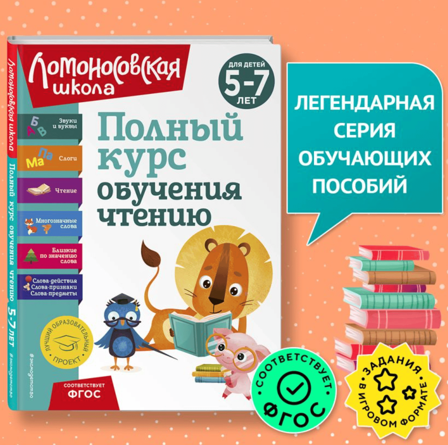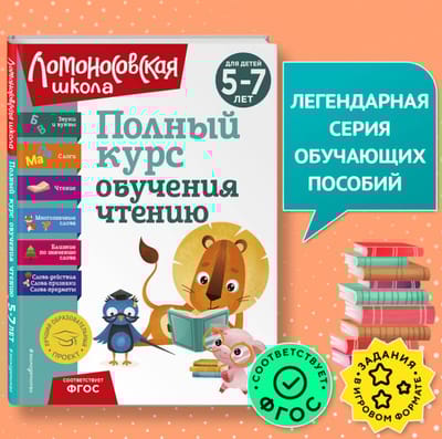 A new book from Eksmo Publishing in the popular "Lomonosov School" series for use in kindergarten or at home. The primary goal of this resource is to teach children reading from a beginner level.