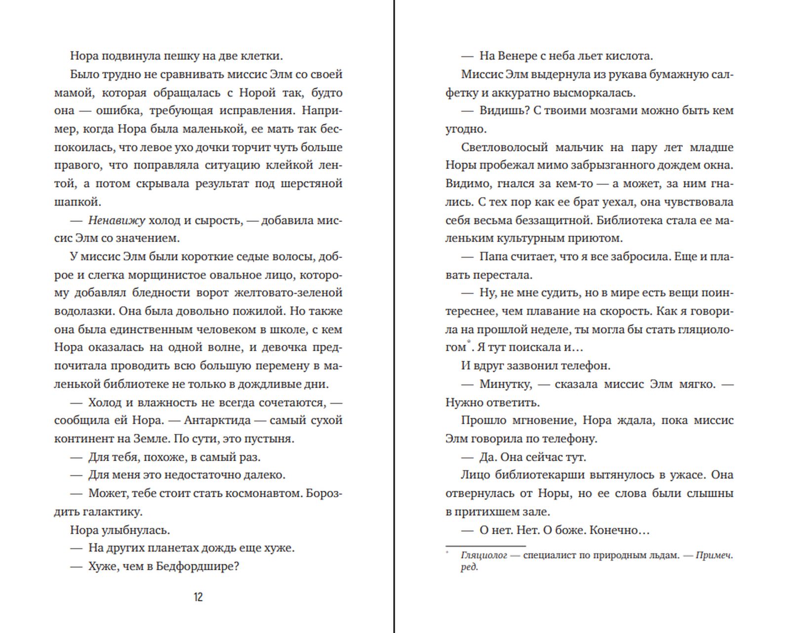 Between life and death, there's a library. Thirty-five-year-old Nora, a music teacher from Bedford, finds herself there when one night her entire life is thrown into disarray. The shelves stretch endlessly. Each book offers a chance to live her own, but completely different, life. To make different decisions and, most importantly, not to regret what never happened. It turns out, had Nora chosen differently at one point or another, she could have become a rock star, an Olympic champion, a glaciologist, a wife and mother, and even visited Australia.