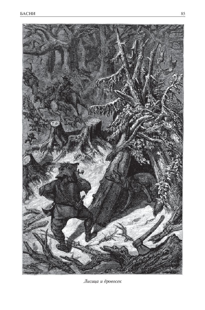 The edition is decorated with numerous works by famous artists. Aesop's fables are illustrated by the English animalist Ernest Griset, Jean de La Fontaine's fables by the French illustrator Jean Granville, and Ivan Krylov's fables by the Russian painters A. P. Sapozhnikov (illustrations in the text) and K. A. Trutovsky (illustrations in the text).