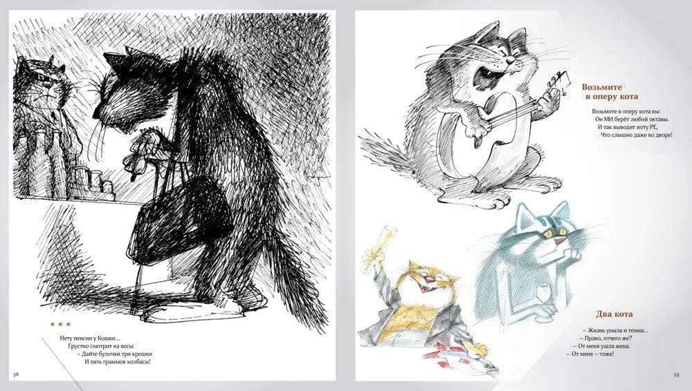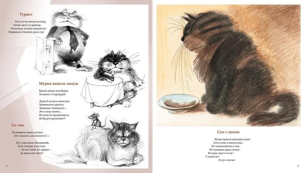 Yay! Hooray! Hurrah!!! Finally, under the banner of cats, a complete collection of "cat" works by famous children's poet Andrey Usachev and honored artist of Russia Viktor Chizhikov has been organized. As a result of their many years of observation of cats, their manners and habits, these two talented people have created a whole planet of furry individuals, each of whom differs in the expression of the face, body curve, paw placement, whisker length, tail position and life position... Thanks to the creative cooperation of Victor Chizhikov and Andrei Usachev, this book brings together representatives of different layers of the feline community: hooligans and lazy, athletes and musicians, poets and artists, thinkers and philosophers, schoolchildren and pensioners... On the agenda are questions about cat status, cat satiety, cat coziness and ordinary cat happiness. It is safe to say that meeting cats will bring great joy to adults and children. Any reader will find his or her cat and will definitely make friends with him or her!
