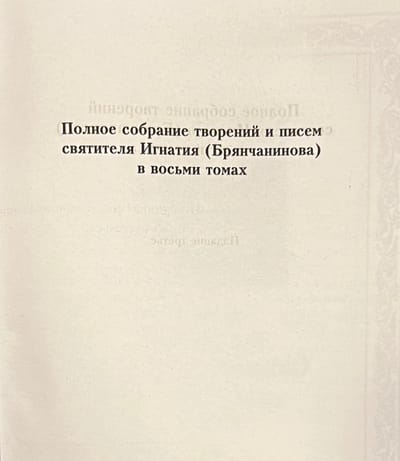 Before us is a treasury of holy theological thought - a complete collection of works of the outstanding Russian spiritual writer and theologian, ascetic and ascetic St. Ignatius (Bryanchaninov), Bishop of the Caucasus and Black Sea. The study of his spiritual heritage can be of great benefit to us.
