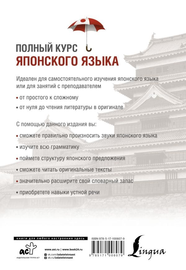 The complete course of Japanese language consists of 11 lessons, which allow you to learn to read and write, master the basic rules of grammar, get acquainted with the peculiarities of parts of speech and syntax, acquire a large stock of words and expressions, master conversational skills. In all grammar topics there are exercises for practicing practical skills. At the end of the textbook there are keys that you can use to check yourself. All dialogs, texts and a large number of exercises can be listened to on a CD recorded by native speakers. The book is suitable both for independent learning of Japanese and for lessons with a teacher. It can also serve as an excellent grammar reference book for those who want to improve their knowledge.