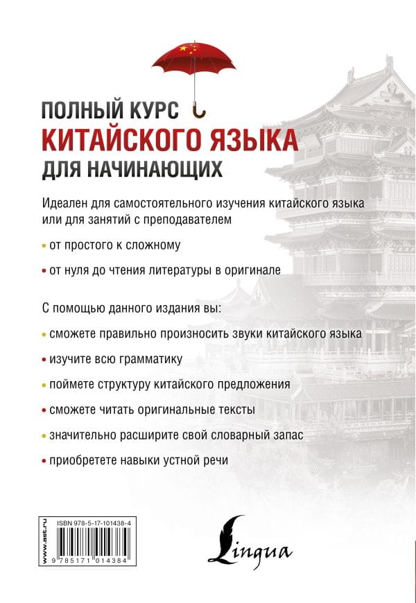 The complete course of Chinese language consists of 15 lessons, which allow you to learn to read and write, master the basic rules of grammar, get acquainted with the peculiarities of parts of speech and syntax, acquire a large stock of words and expressions, and master the skills of conversational speech. In all grammar topics there are exercises for practicing practical skills. At the end of the manual there are answers to check yourself. All dialogs, texts and a large number of exercises can be listened to on a CD recorded by native speakers. The book is suitable both for independent learning of Chinese and for lessons with a teacher. It can also serve as an excellent grammar reference book for those who want to improve their knowledge.