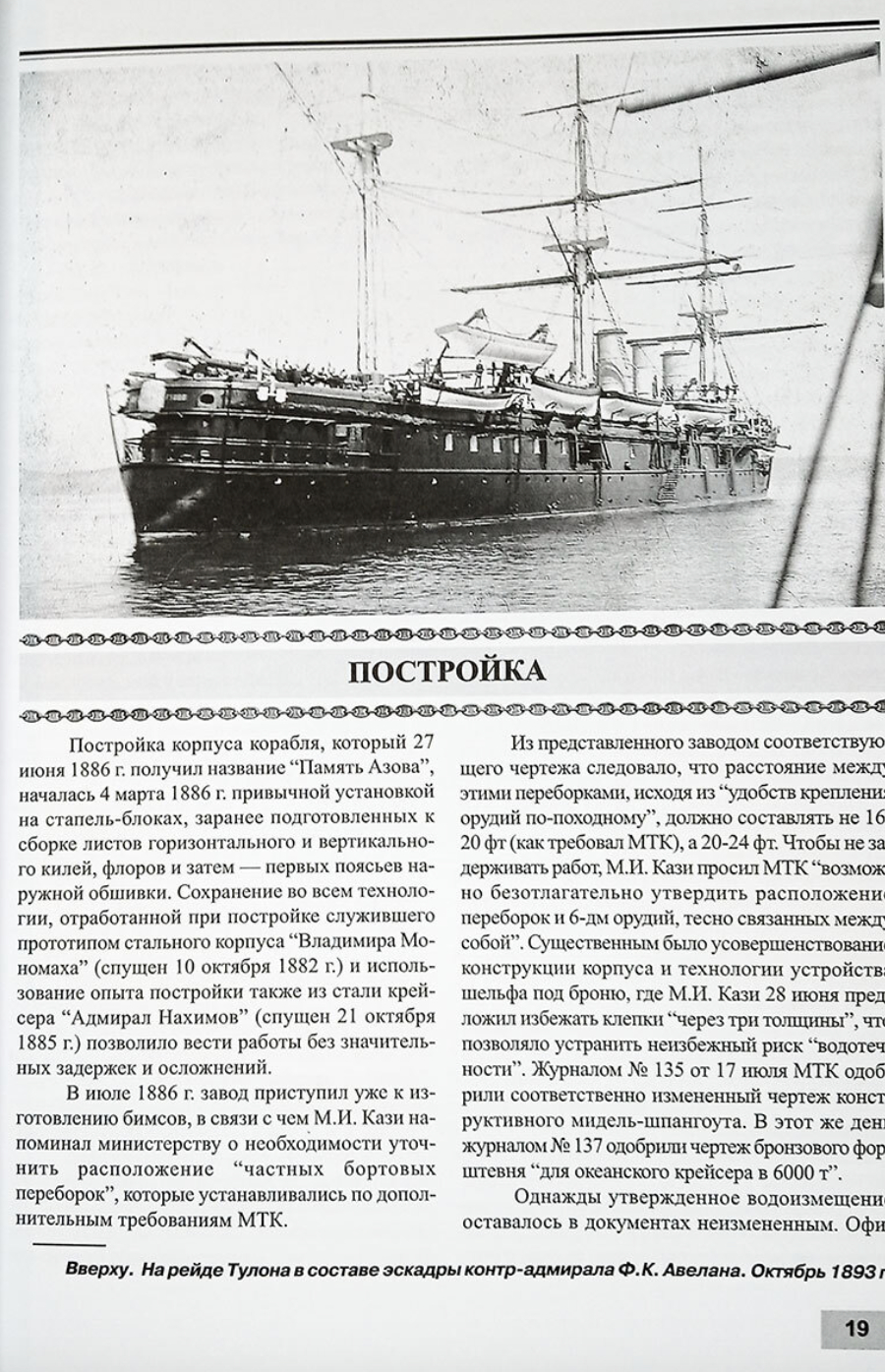 "Memory of Azov" is the first cruiser of the Russian Imperial Navy, the design of which was based not on English prototypes, but on French ones. In 1885, the French were able to create a project for a high-speed armored deck cruiser! And in Russia they thought that they could create a high-speed, only armored and better armed cruiser of the same dimensions!