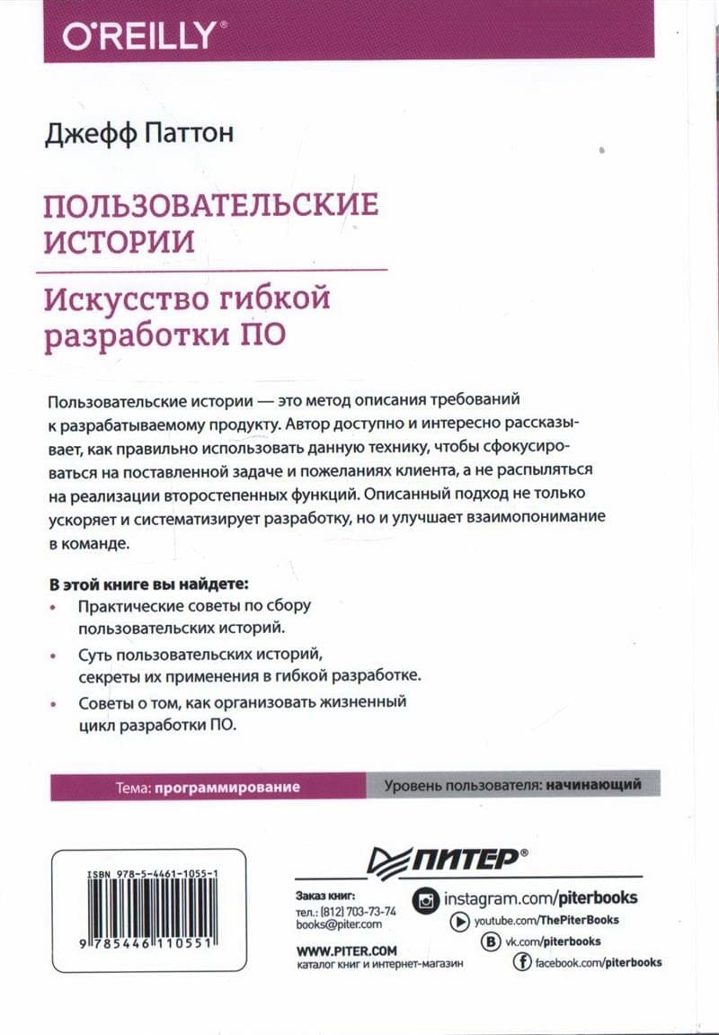 User stories are a method of describing requirements to the product being developed. The author explains in an accessible and interesting way how to use this technique correctly in order to focus on the task at hand and the client's wishes, and not to be dissipated in the realization of secondary functions. The described approach not only speeds up and systematizes development, but also improves mutual understanding in the team.