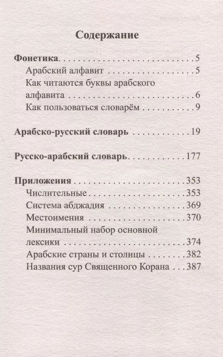 The dictionary is intended for everyone who is beginning to learn Arabic. Its small format allows you to take it with you to classes or on trips.
