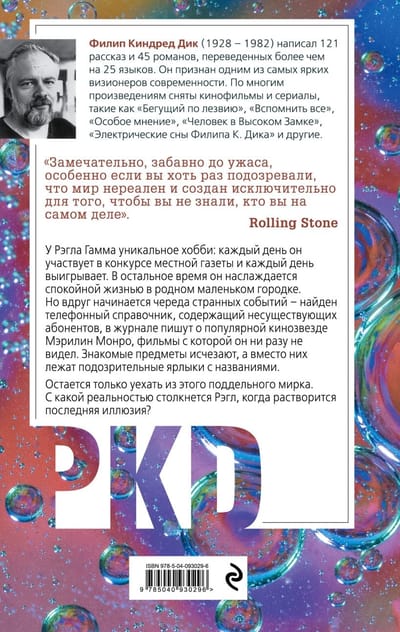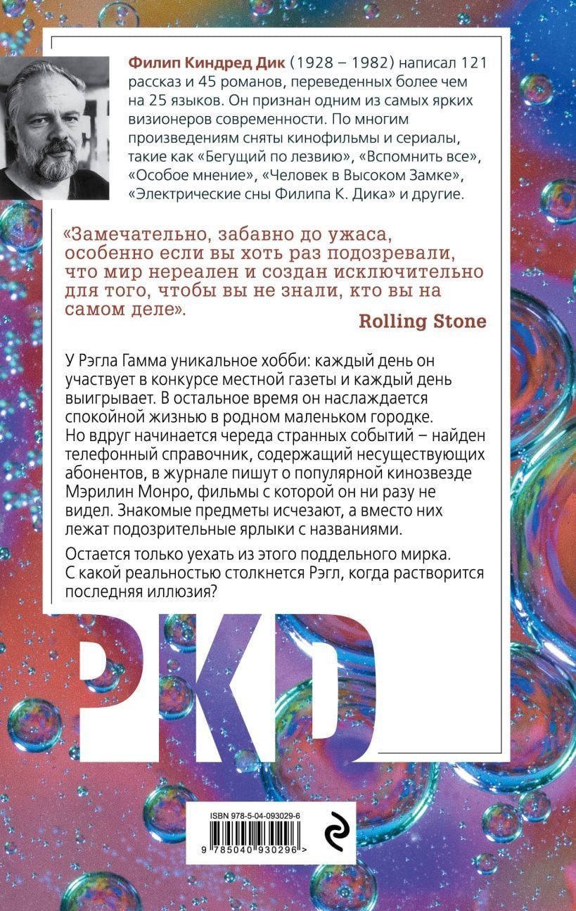 Ragle Gumm has a unique hobby: every day he enters a contest for the local newspaper and every day he wins. The rest of the time he enjoys a quiet life in his native small town. But suddenly a series of strange events begins - a telephone directory is found containing non-existent subscribers, a magazine writes about the popular movie star Marilyn Monroe, movies with which he has never seen. Familiar objects disappear, and in their place lie suspicious labels with names. The only thing left to do is to leave this fake world. What reality will Ragle face when the last illusion dissolves?