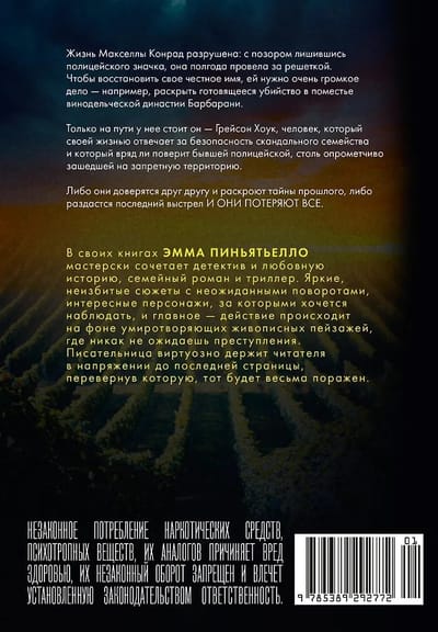 Maxella Conrad's life is ruined: disgraced by the loss of her police badge, she spent six months behind bars. To clear her name, she needs a high-profile case—like solving a planned murder at the estate of the Barbarani winery dynasty.