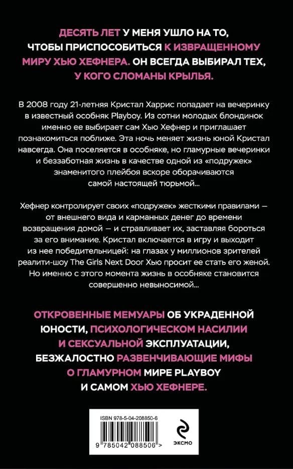 Crystal's book is a candid memoir of stolen youth, psychological abuse and sexual exploitation, mercilessly debunking the myths about the glamorous world of Playboy and Hugh Hefner himself.