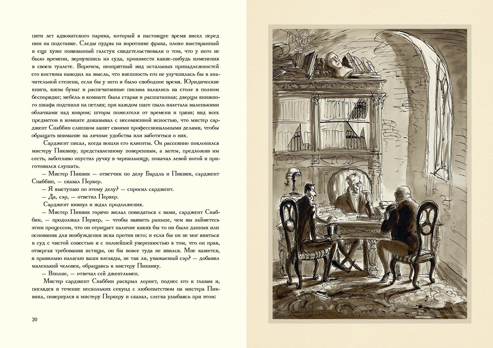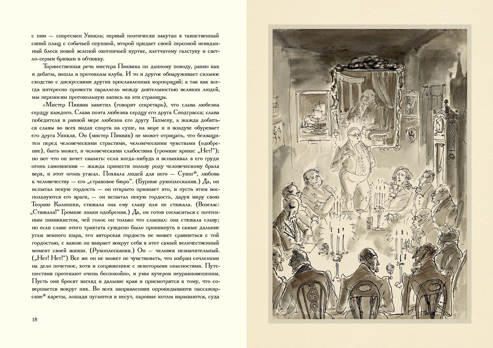 "Posthumous Notes of the Pickwick Club" - the first novel by Charles Dickens, immediately brought the author a stunning success and world fame. Readers and critics appreciated the subtle humor and excellent observation, with which Dickens depicts the traditions, manners and life in England in the first third of the XIX century, in vivid pictures describing the adventures of the main characters, their friends and acquaintances. Once the founder of the Pickwick Club, charming and good-natured Mr. Samuel Pickwick, took it upon himself to inform the club "about his travels, explorations, observations of people and manners ..." Thus begins the eccentric journey of the eccentric Mr. Pickwick and his friends through the adjoining counties of London. The merry gentlemen make new acquaintances, hunt, get into ridiculous and funny situations and... fall in love. Exquisite graphics of one of the best Soviet illustrators Vladimir Alexeevich Milashevsky brilliantly conveys the characters and perfectly complements the sparkling prose of Charles Dickens.