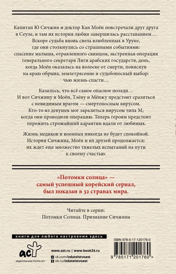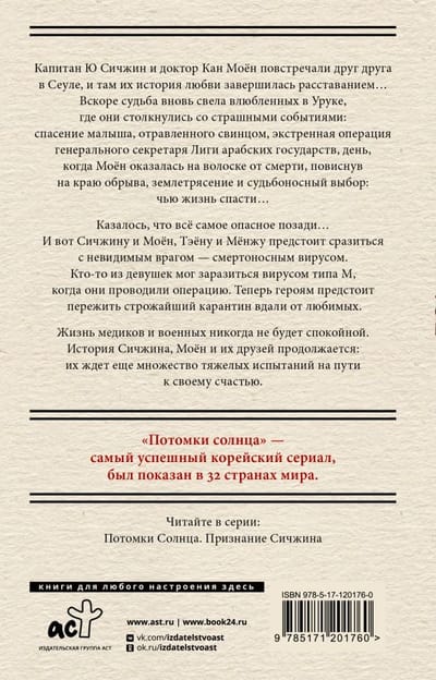Captain Yoo Shijin and Dr. Kang Moyeon were brought together by fate in Seoul, but there their love story ended tragically... Soon the lovers met again in Uruk, where even more severe trials awaited them: deadly threats, natural disasters and saving other people's lives... Now new dangers await the heroes: A ghost village inhabited by sick children with no one to help them, the deadly M3 virus and the strictest quarantine - a real war of medics against an invisible enemy, the unexpected kidnapping of Moyoung and a dangerous operation of the special forces unit "Alpha", from which not everyone managed to return... And what will be stronger: friendship or war, love or death? The life of the military and doctors is dangerous and complicated. The story of Shijin and Moyeon continues: the lovers have not yet passed all the difficulties that fate has prepared for them. They have a long road ahead of them to a happy future.
