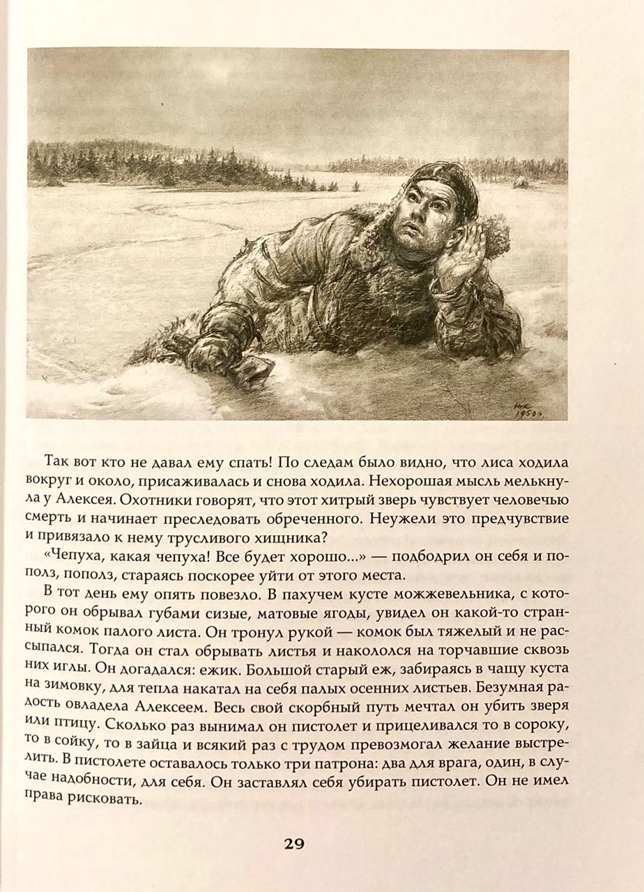 The plot of “The Tale of a Real Man” is based on real events that occurred with the pilot Alexei Maresyev during the Great Patriotic War (in the name of his hero, the writer changed one letter). His plane, which shot the entire ammunition, took four enemy fighters into ticks. The pilot tried to escape from the ticks, but the machine gun queue still got the engine. He struggled to pull a plane losing altitude to his territory until he crashed into the tops of the trees. The pilot was seriously wounded; for eighteen days, hungry, frostbitten, he crawled to his own, until the children of the partisans found him. Then the hospital, amputation of both legs. But after a year and a half Maresyev again sat at the helm of the aircraft, and the fighter. Remaining a cripple, he still rushed into the sky, into battle. And he won.