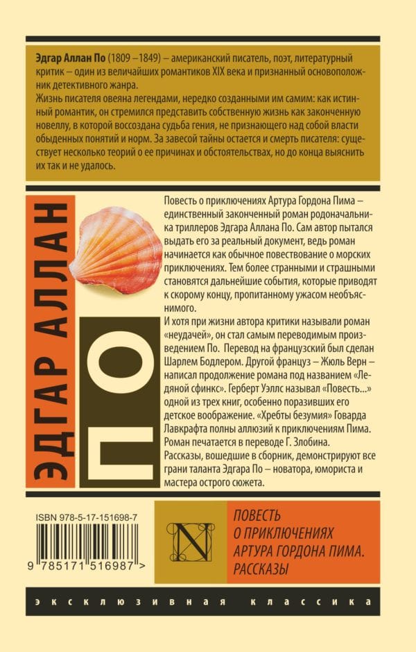 The Tale of the Adventures of Arthur Gordon Pym is the only completed novel by the progenitor of thrillers, Edgar Allan Poe. The author himself tried to pass it off as a real document, because the novel begins as an ordinary narrative of sea adventures. The more strange and frightening are the further events that lead to the soon ending, imbued with the horror of the inexplicable. Although critics called the novel a "failure" during the author's lifetime, it became Poe's most translated work. It was translated into French by Charles Baudelaire. Another Frenchman, Jules Verne, wrote a sequel to the novel called The Ice Sphinx. Herbert Wells called "The Tale of..." one of three books that particularly struck his childhood imagination. Howard Lovecraft's "Ridges of Madness" is full of allusions to Pym's adventures. The novel is printed in the translation of G. Zlobin. Stories included in the collection, demonstrates all facets of the talent of Edgar Poe - an innovator, humorist and master of a sharp plot.