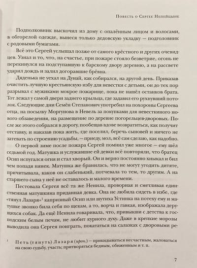 One day, the writer and historian V. M. Glinka, while working with museum funds and archives, found an old engraving - a portrait of an officer with military orders on his uniform, leaning crutches against his shoulder, with the signature "Brave Colonel Nepeitsyn", and a few years later - a drawing of a prosthetic leg designed by the famous inventor I. P. Kulibin for the artillery officer Nepeitsyn. The unusual case interested the writer - this is how work began on books about the outstanding Russian officer, the hero of the Ochakov assault and the Patriotic War of 1812. On the pages of the book "The Tale of Sergei Nepeitsyn" we see Prince Grigory Potemkin and General Mikhail Kutuzov, artist Mikhail Ivanov and inventor Ivan Kulibin and many other contemporaries of the main character. The story begins with Nepeitsyn's childhood, and continues with his studies at the Artillery Engineering Corps, where Sergei studied together with the future Minister of War Alexei Arakcheev and future heroes of the Napoleonic Wars Ivan Dorokhov and Vasily Kostenetsky. After graduating from the corps, Nepeitsyn ended up in the Russo-Turkish War of 1787-1791, and his first major battle was the storming of the Ochakov fortress in 1788. As a result of a serious injury received on the walls of Ochakov, the seventeen-year-old artillery lieutenant lost his leg above the knee, but a fateful meeting with I. P. Kulibin gave him the opportunity to continue his military service. You can learn about the further fate of this extraordinary man by reading the novel "The Road of Honor".