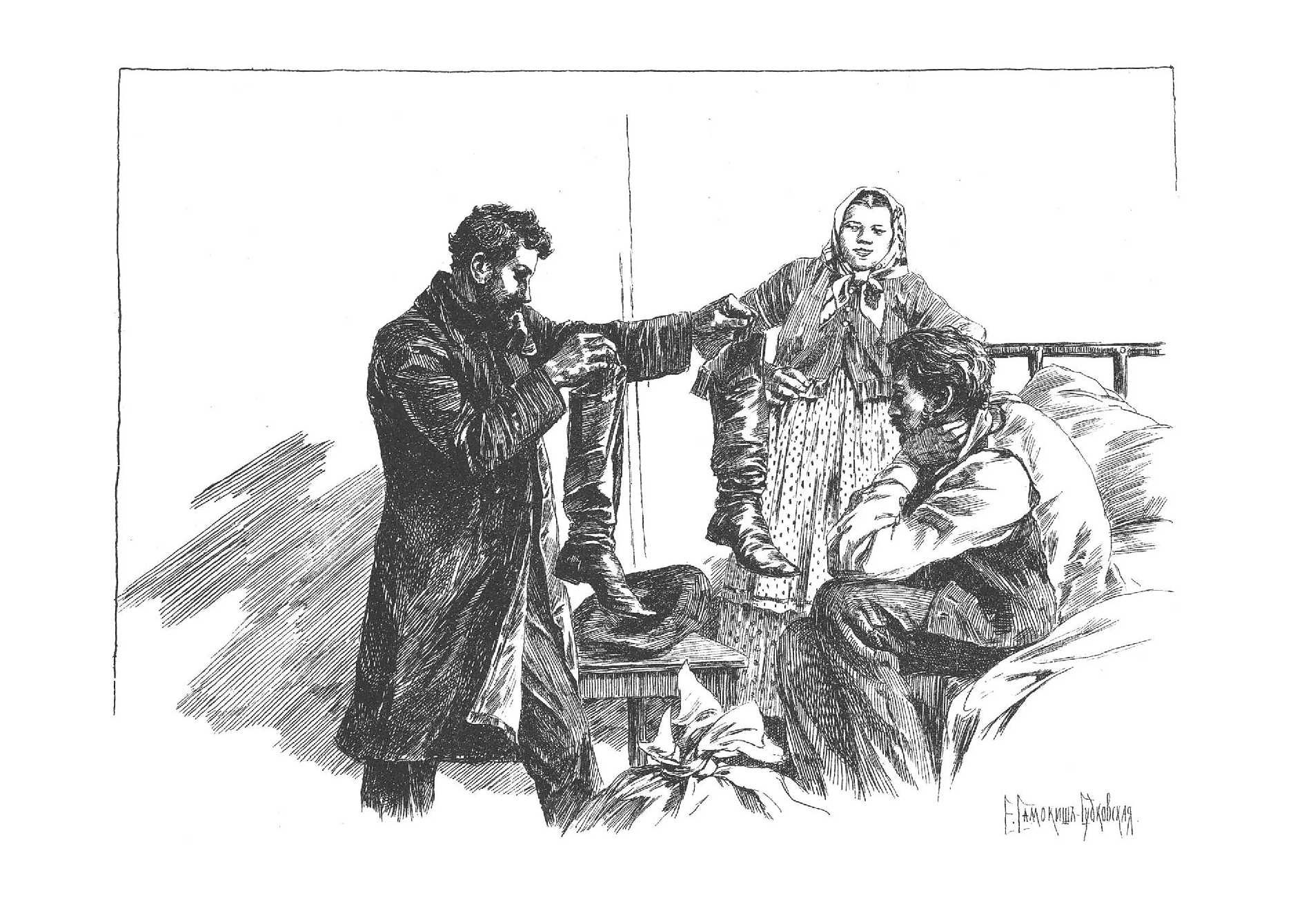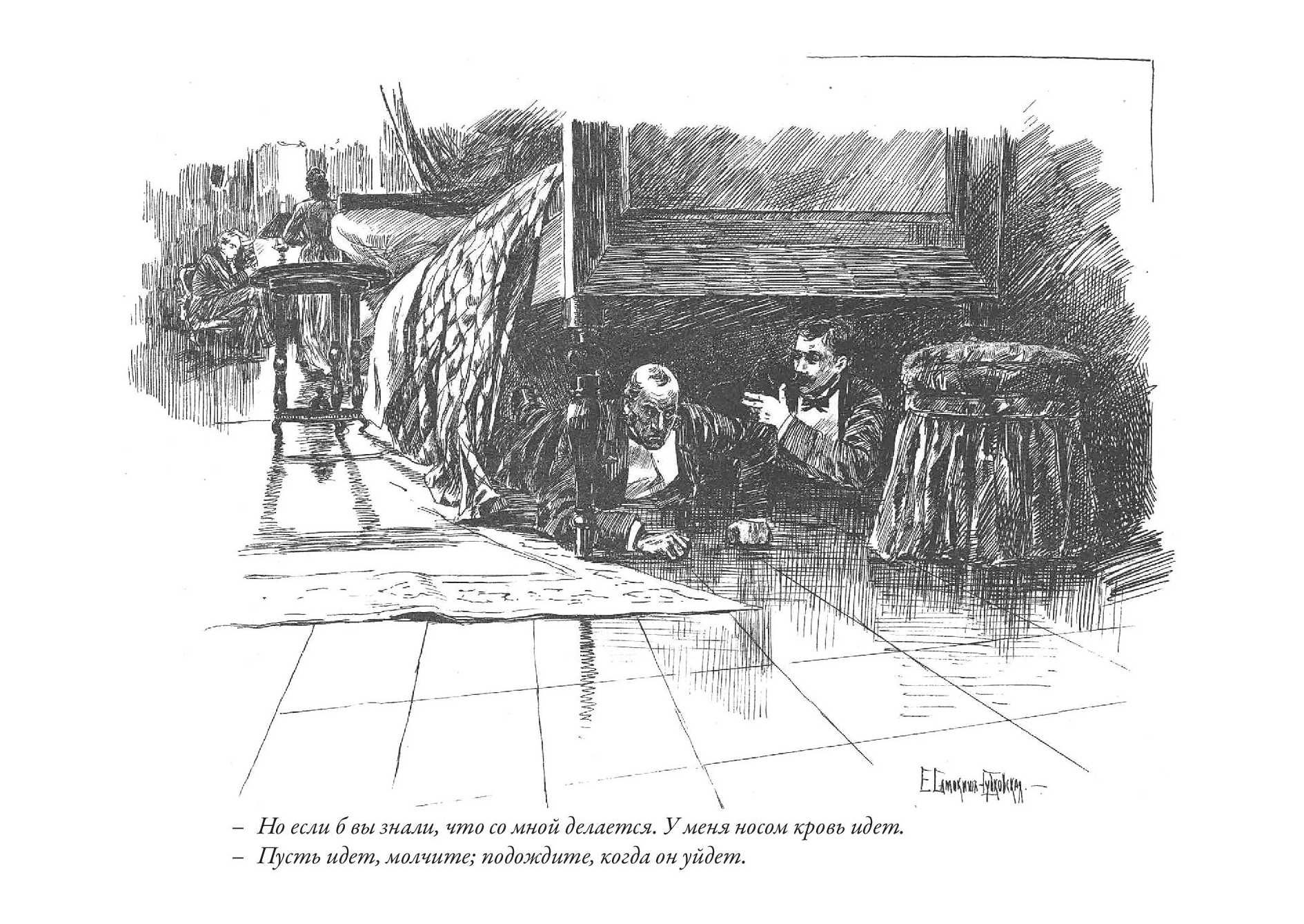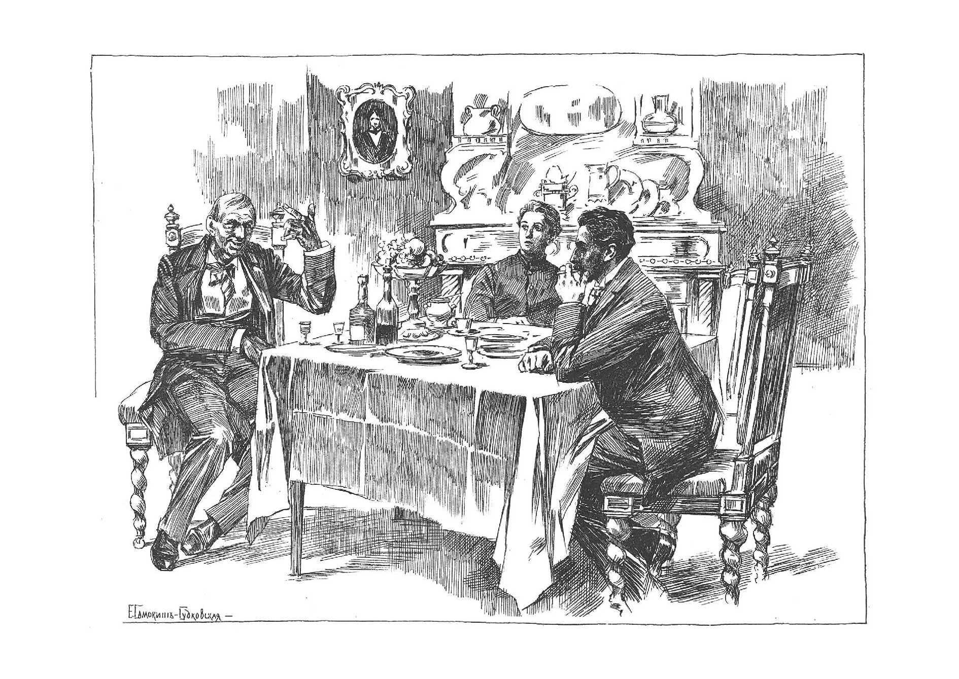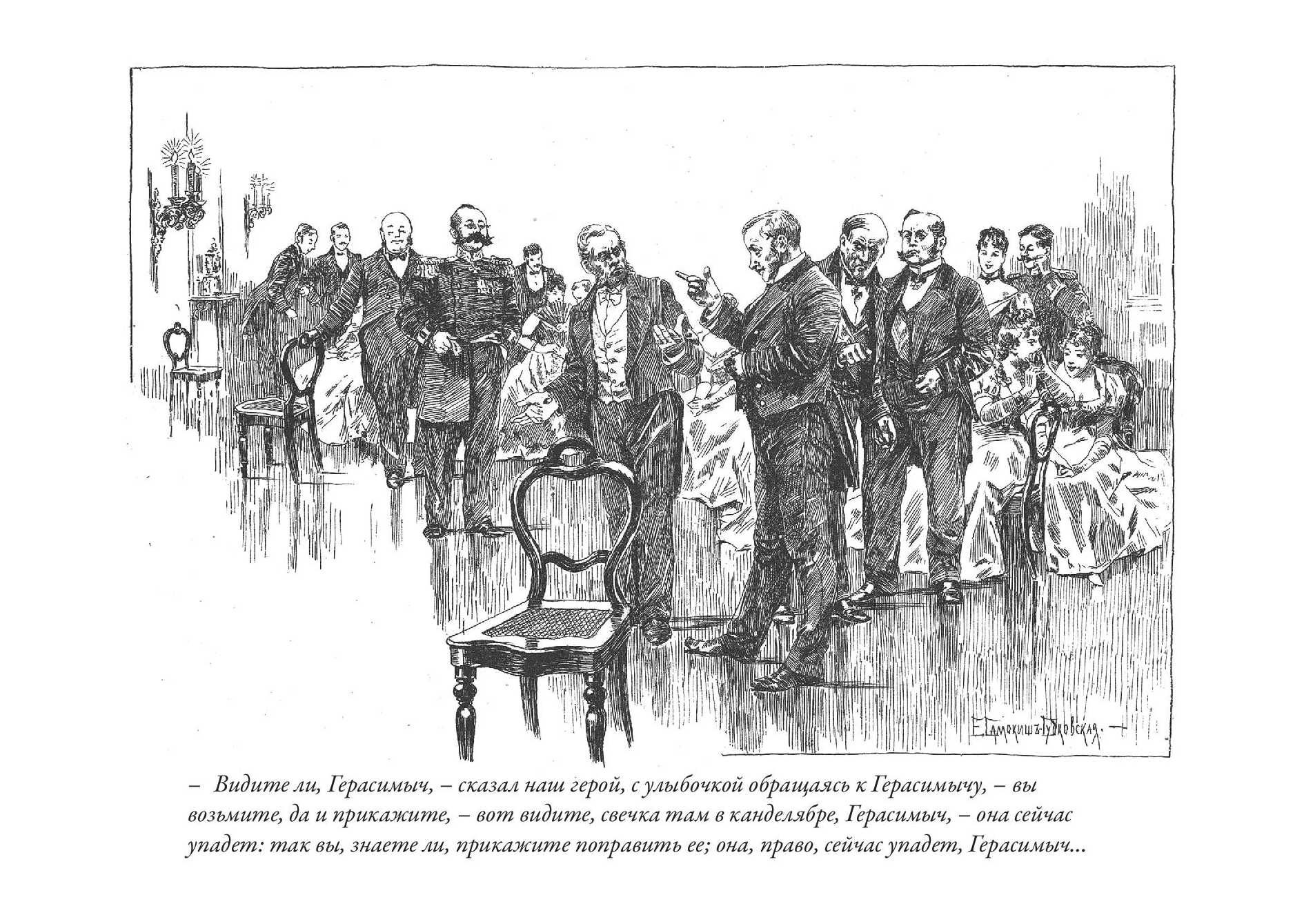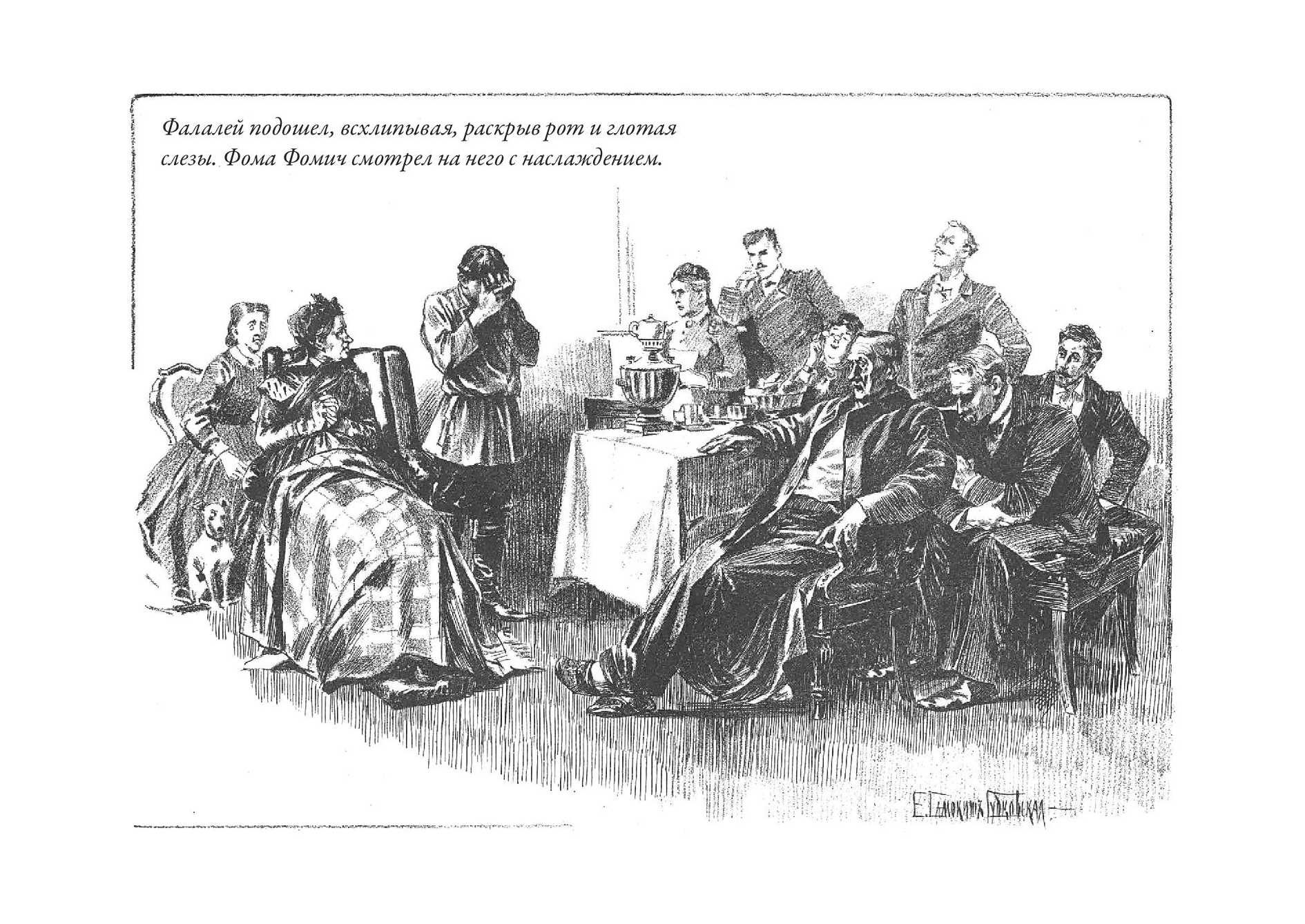 The novels and stories included in the collection were written by Dostoevsky between 1846 and 1864. In them Fyodor Mikhailovich develops the theme of "little people", so important for his work. Constrained life circumstances sometimes fatally affect the psyche of his characters, often pushing them to almost deviant behavior. Fearing an unpredictable future, the half-impoverished official Prokharchin saves money in a mattress, on which he ends his days. The consciousness of the hero of the story "The Double" bifurcates, creating his own phantom personality. In the story "The Village of Stepanchikovo and its Inhabitants," the despot Foma Fom Fomich compensates for his inferiority by terrorizing those around him. In "Another Man's Wife..." an anecdotal situation turns into a tragicomedy. Social humiliation sometimes pushes Dostoevsky's characters to try on the guises of jesters; these masks allow them to hide their own tears and heartache. Dostoevsky's humor is often the humor of tragedy, in which laughter struggles with tears against a background of bitter irony and sarcasm. The works of the collection are decorated with drawings by Elena Petrovna Samokish-Sudkovskaya. These and her other illustrations of the writer's works were published in 1895 in a separate album "The Humor of F. M. Dostoevsky". This album served as a free supplement to the magazine "Oskolki". The future artist was born in February 1862 in the family of a hereditary military engineer. She studied at the famous Pavlovsk Women's Institute and at the Helsingforska Art School at the famous painter Vasily Petrovich Vereshchagin. From 1882 to 1890 Elena Petrovna lived in Paris, studying in the atelier of Jules Bastien-Lepage. Her passion for painting brought her together with her future husband, the talented marinist Rufim Gavrilovich Sudkovsky. Unfortunately, just two years after the wedding Rufim Gavrilovicha brought to the grave typhus. Elena Petrovna grieved terribly. A few years later in St. Petersburg, she met her second future husband - a master of battle painting, Academician Nikolai Semenovich Samokish. At this time, Elena Petrovna was fond of Art Nouveau. She became widely known as an illustrator of children's books and works of the classics. Many people remember her drawings for "Eugene Onegin". Her illustrations for "The Humpbacked Horse" became widely known. The couple worked together on the drawings for "Dead Souls". The revolution of 1917 separated them on different sides of the barricades. Nikolai Semyonovich created his own art studio in Simferopol, and his wife moved to Paris, dear to her heart, lost among many other Russian emigrants.