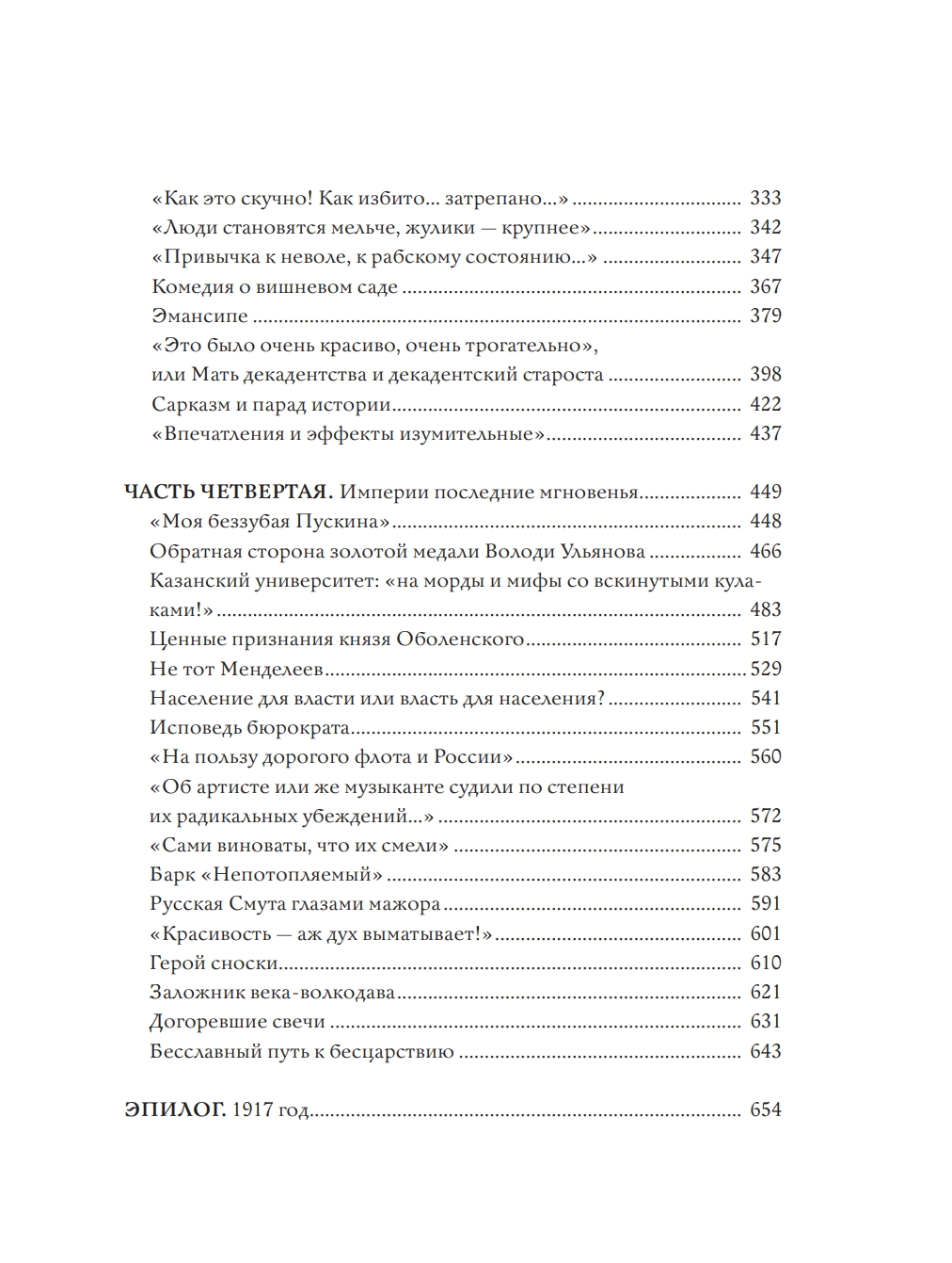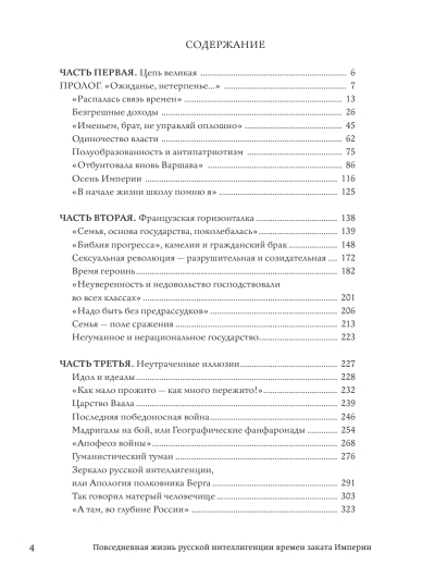 This book by renowned Moscow historian and writer, Doctor of Philosophy S. A. Ekshtut, illuminates various aspects of the life of the intelligentsia in Russia in the late 19th and early 20th centuries, describing changes in family relationships, moral ideals and values, as well as the development of education, science, and cultural life in both capitals and the provinces. The author offers a holistic view of the historical process and the specific features of specific historical events, combining microhistorical and macrohistorical approaches. This work will be of interest not only to specialists but also to a wide range of readers interested in Russian history.