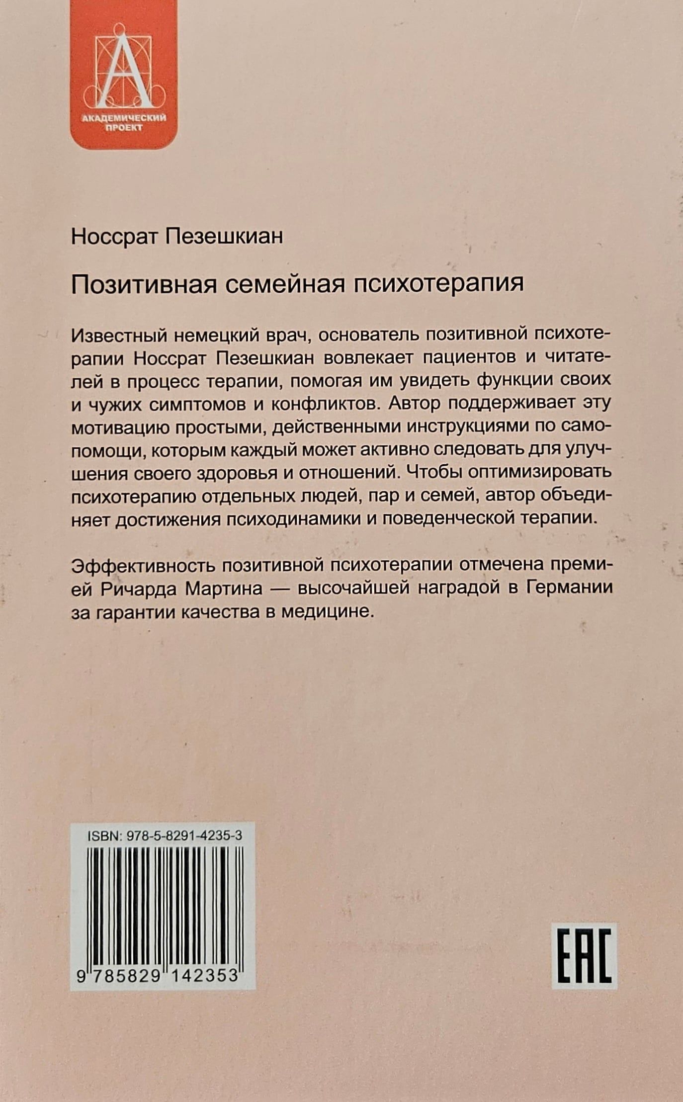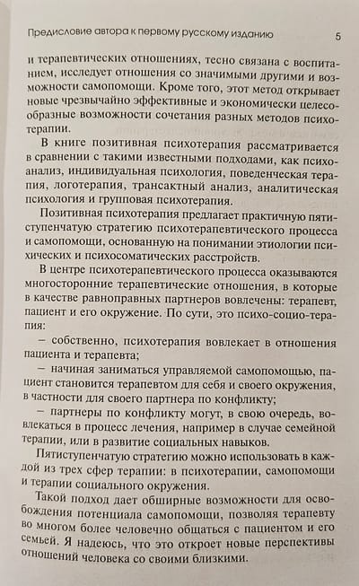 The well-known German physician, the founder of positive (from Latin positum - taking place) psychotherapy Nossrat Peseshkian involves patients and readers in the process of therapy, helping them to see the functions of their own and others' symptoms and conflicts. The author supports this motivation with simple, actionable self-help instructions that everyone can actively follow to improve their health and relationships. To optimize psychotherapy for individuals, couples and families, the author combines the achievements of psychodynamics and behavioral therapy.