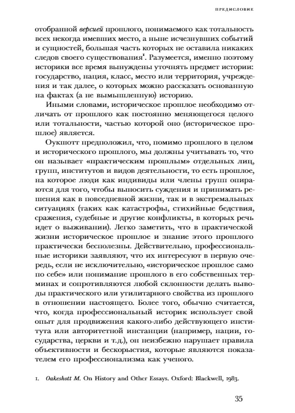 The eminent American historical theorist Hayden White (1928-2018), in his last lifetime book, declares the incompatibility of two basic approaches to the past. The first is the historical past, created by historians for the purposes of knowledge and existing only in their books and articles, containing no "indications of how to act in the present or foresee the future." The second is the Practical Past, concerned with people's needs in the present and their vision of the future, useful not only in a broad worldly sense but also in an ethical, Kantian sense, since it offers its help in answering the question, "What should I do?" What literary forms and genres can fulfill our need for a practical past today? Can history, as it did in the time of Antiquity and the Middle Ages, once again fulfill a function? These are the questions H. White proposes to discuss them in the book that has become his intellectual testament.