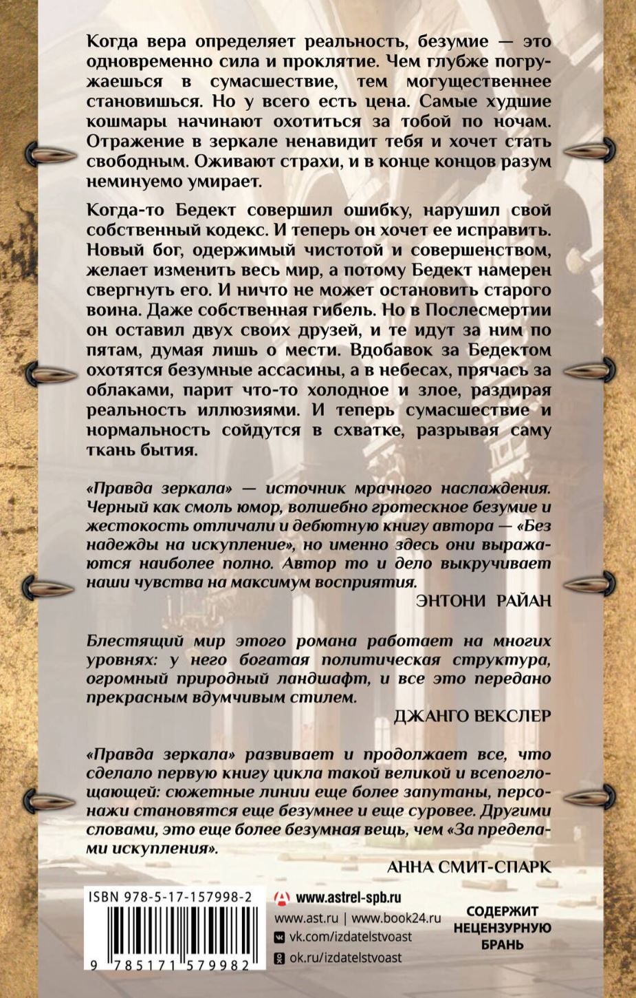Bedekt once made a mistake, broke his own code. And now he wants to make it right. A new god, obsessed with purity and perfection, wants to change the whole world, and so Bedect is determined to overthrow him. And nothing can stop the old warrior. Not even his own demise. But in the Afterlife, he has left two of his friends behind, and they are following him, thinking only of revenge. In addition, Bedekt is hunted by mad assassins, and something cold and evil hovers in the sky, hiding behind the clouds, tearing reality apart with illusions. And now madness and normality will clash, tearing at the very fabric of existence.
