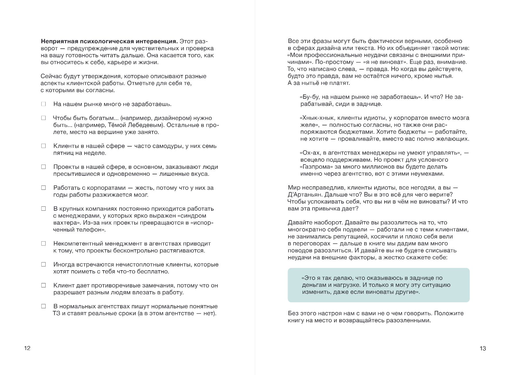 "Play with fonts," "make the text appealing," "make the logo bigger"—sound familiar? Or sleepless nights, unanswered messages from clients, and scammers who don't pay for completed projects? This book is for anyone who wants to work differently.