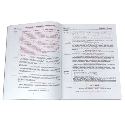 The Orthodox Calendar with Troparions and Kontakions is an annual thematic supplement to the official Patriarchal Calendar of the Russian Orthodox Church. This publication is intended for clergy and laypeople interested in Orthodox liturgy.