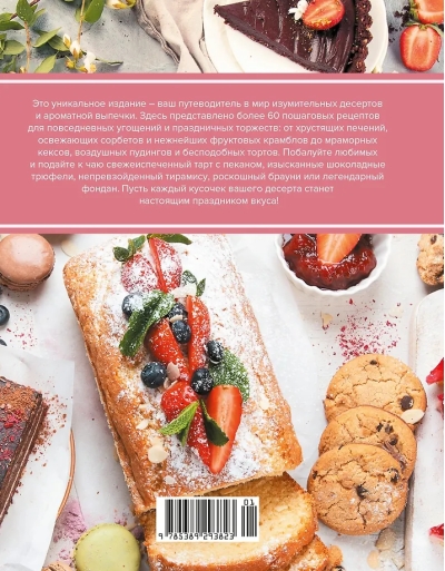 This unique publication is your guide to the world of amazing desserts and fragrant pastries. It features over 60 step-by-step recipes for everyday treats and festive celebrations: from crispy cookies, refreshing sorbets, and delicate fruit crumbles to marble cakes, airy puddings, and incomparable cakes. Treat your loved ones and serve exquisite chocolate truffles, unrivaled tiramisu, luxurious brownies, or legendary fondant with tea. Let every bite of your dessert be a true feast for the senses!