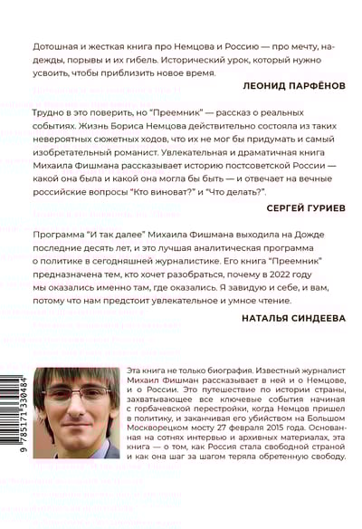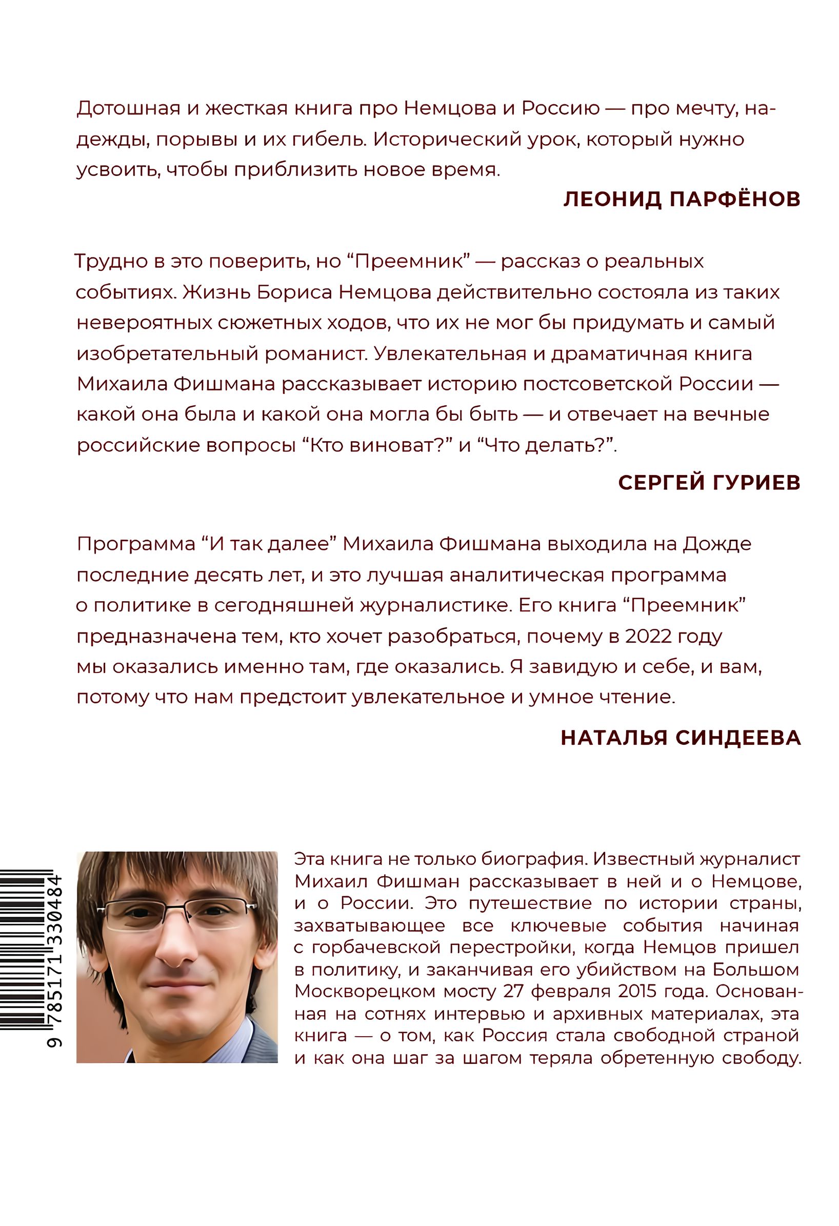 "Successor: The Story of Boris Nemtsov and the Country Where He Never Became President" is a political biography of Boris Nemtsov, written by journalist Mikhail Fishman.