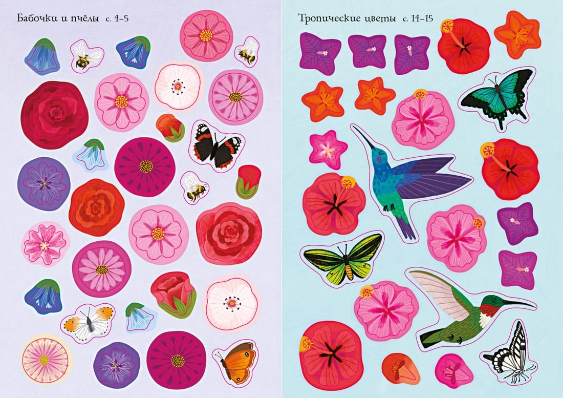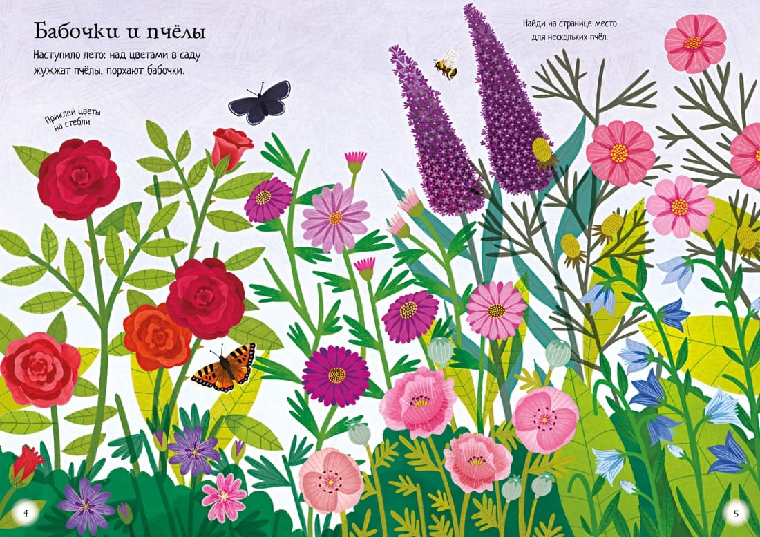 Fill the Alpine meadow and gardens with flowers, find a place for animals in the meadow with bluebells, place hummingbirds flying among tropical plants, and plant daisies and roses in pots at the flower market. Read and play! Develop attention, imagination, fine motor skills, artistic taste and emotional intelligence.