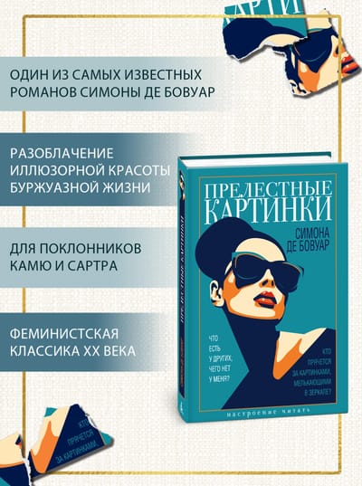 "Pretty Pictures" is one of the most famous novels by the French writer Simone de Beauvoir, an icon of the feminist movement, the ruler of minds of the mid-20th century. The life of the main character Laurence is worthy of envy: a faithful husband, two charming daughters, an interesting job in an advertising agency, a charming lover. She is surrounded by "pretty pictures", which she is used to using to advertise tomato sauces and parquet floors. What is hidden behind these brilliant decorations? The real world, genuine feelings? Or emptiness, in which there is nothing but loneliness and melancholy?