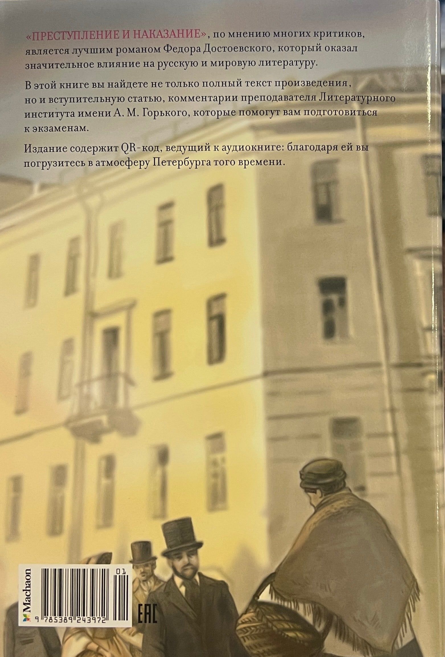 "Crime and Punishment", according to many critics, is the best novel by Fyodor Dostoevsky, which had a significant influence on Russian and world literature. In this book you will find not only the full text of the work, but also an introductory article, comments by a teacher of the Gorky Literary Institute, which will help you prepare for the exams. The edition contains a QR code leading to the audiobook: thanks to it you will immerse yourself in the atmosphere of St. Petersburg of that time.