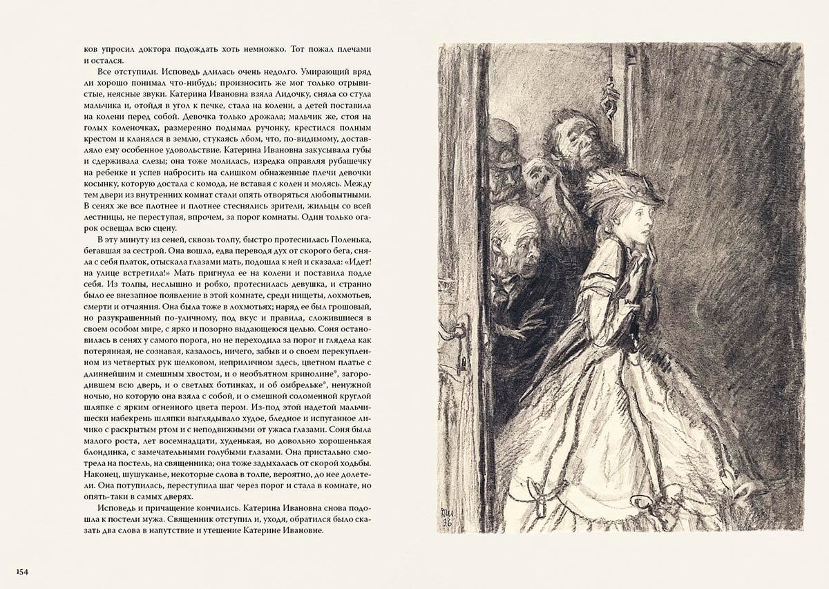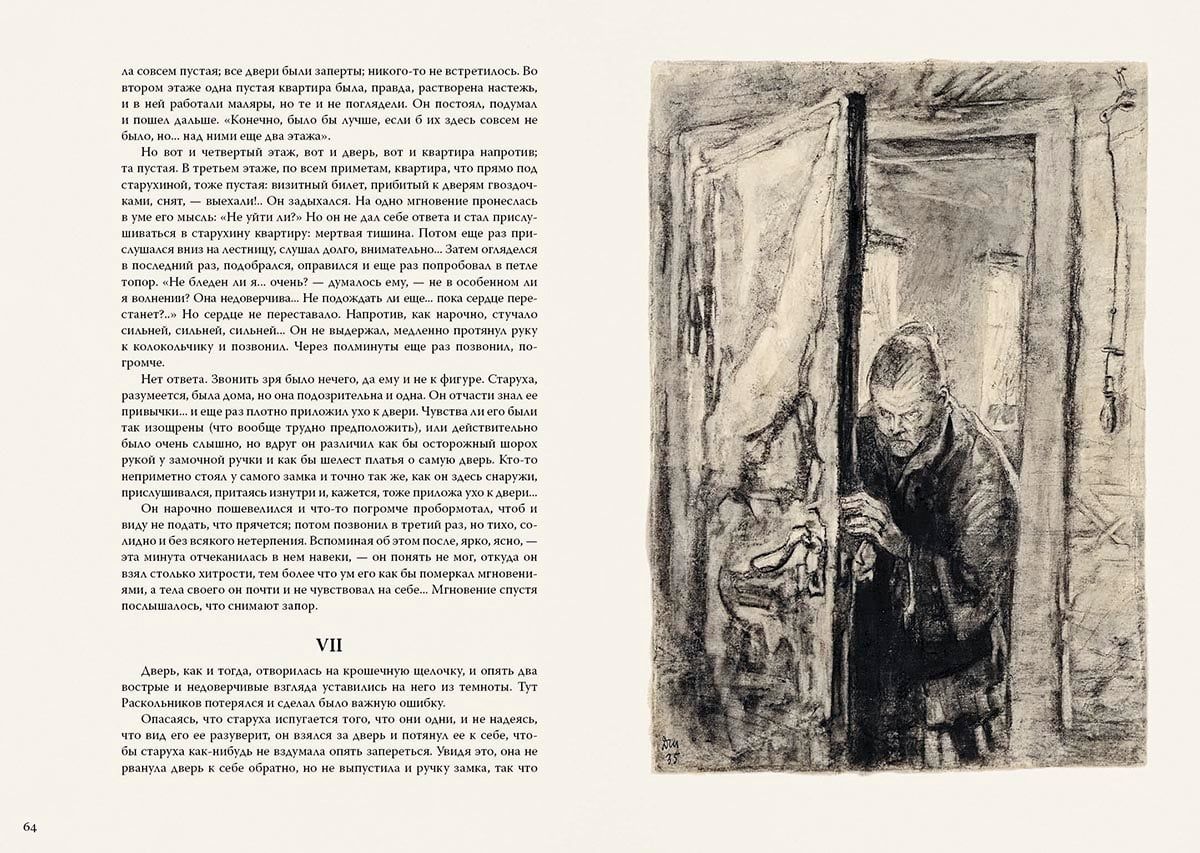 The novel "Crime and Punishment" - an example of psychological and socio-philosophical prose. The protagonist student Rodion Raskolnikov plots murder and robbery. His motives, on the one hand, are clear: he is poor and in dire need of money; on the other hand, it is not the thirst for enrichment that drives him, but the thought of the chosenness and superiority of some people over others. Whether it is possible to justify a crime internally and what punishment awaits the one who dares to transgress through social and moral laws - these questions create the drama of the novel and keep the reader in suspense until the finale. Expressive illustrations for the novel were created by the artist Dementy Shmarinov, a master of conveying the most complex psychological characteristics of the characters.