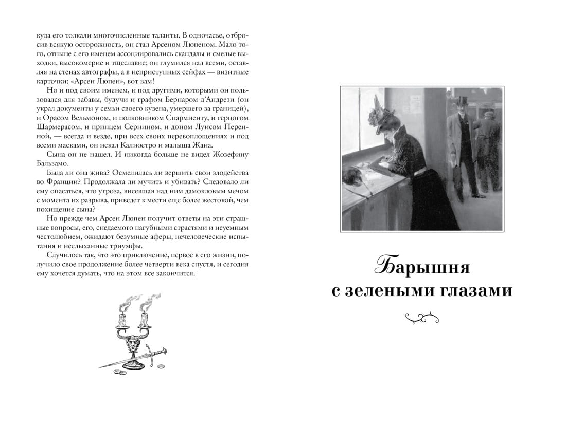 The books of French writer Maurice Leblanc about the adventures of Arsène Lupin were bought during the author's lifetime in huge editions, exceeding the editions of Conan Doyle's books. Arsène Lupin - a man wanted by all the police of the world; more than five hundred famous thefts, more than a hundred convictions! An elusive robber whose exploits are trumpeted by all the newspapers. And at the same time - the defender of the oppressed and disadvantaged, ready to come to the rescue and reveal the secret, to penetrate which was powerless to penetrate the law. This edition includes novels, novellas and stories about the adventures of Arsène Lupin, hiding under different guises and masks: "The Countess of Cagliostro", "The Lady with Green Eyes", "Hercule Petigri's Tooth", "The Man in the sheepskin jacket" and "The Agency" Barnett and Co. The novel "The Countess of Cagliostro" is presented in a new translation, the other works are published in Russian for the first time.
