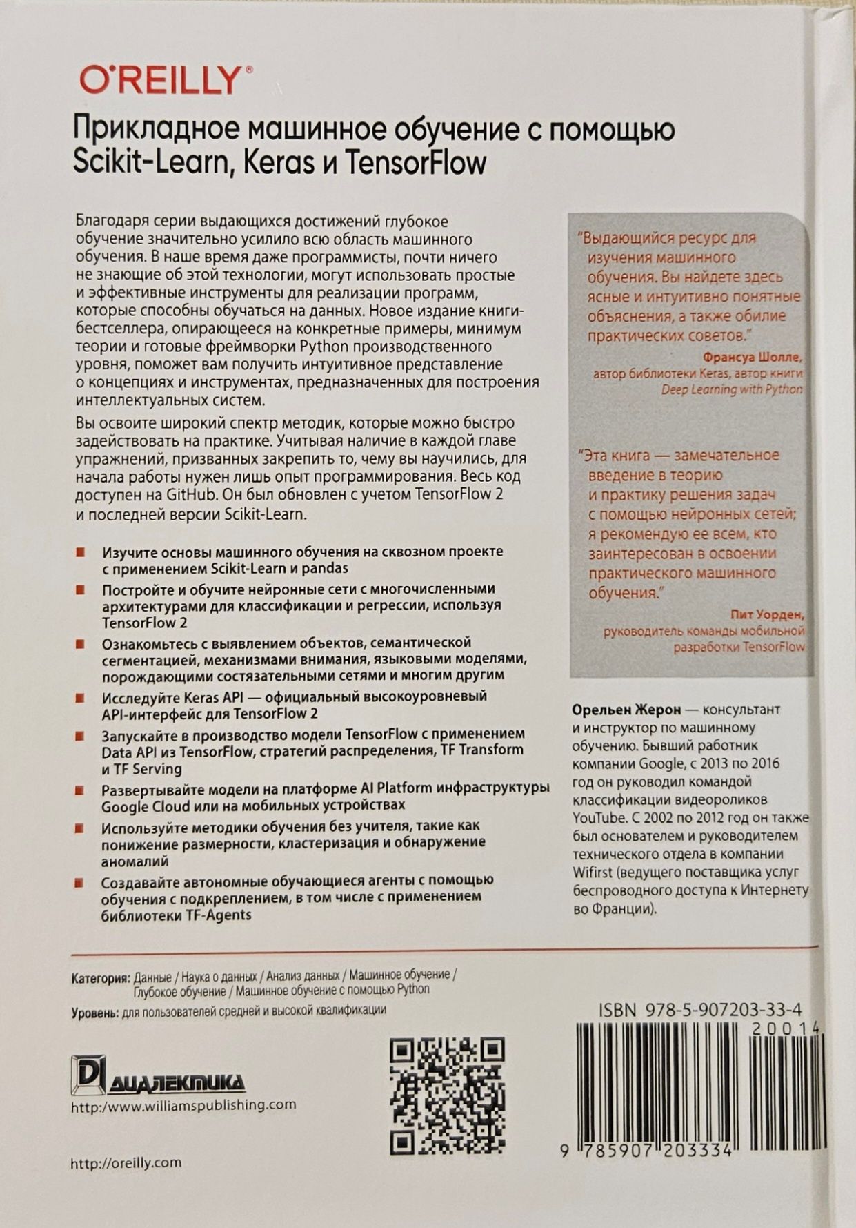 You will learn a wide range of techniques that can be quickly put into practice. Given the presence of exercises in each chapter to consolidate what you have learned, you only need programming experience to get started. All code is available on GitHub. It has been updated to accommodate TensorFlow 2 and the latest version of Scikit-Learn.