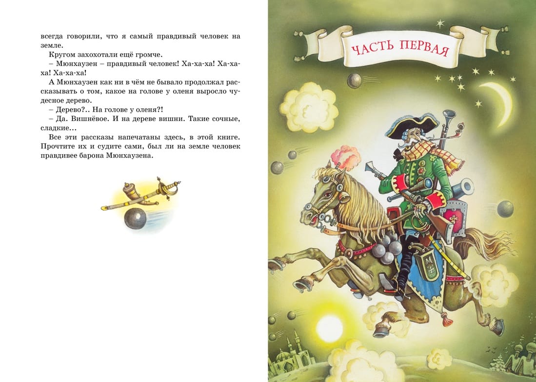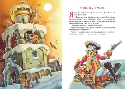 Baron Münhausen is known all over the world - he became famous for his extraordinary adventures. Hardly anyone else could light gunpowder with sparks from his eyes or climb a beanstalk to the moon! And who doesn't remember his stories about flying on a kernel or a tree on a deer's antlers that grew from a cherry pit! Despite their implausibility, we believe them nonetheless. As Baron Münhausen himself, "the most truthful man on earth," believed in them!