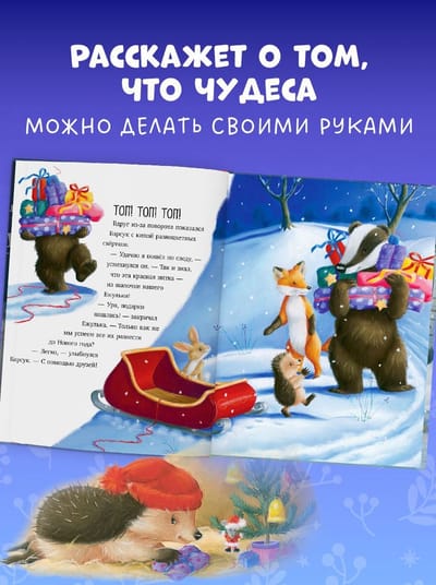New Year is coming soon, and Grandfather Frost is sick and cannot deliver gifts. Of course, Hedgehog agrees to help and sets off. But there are so many gifts in Grandfather's sleigh that little Hedgehog cannot cope alone... Then the Hare, Fox, Badger and the mice rush to help! Will the furry friends manage to deliver all the gifts for the New Year?