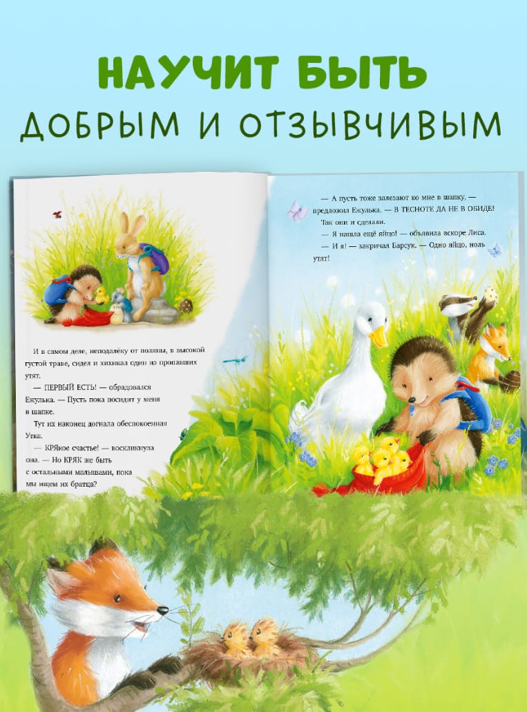The most beautiful day is as kind and sunny as a warm spring day. Together with Jezhulka and his friends, a small reader will help ducklings, collect chocolate eggs and learn that with friends no hardships are afraid. Large story illustrations, large font and comfortable volume of text make this book ideal both for sharing with parents and for the first independent reading of the child. A comfortable soft cover will allow you to take the book with you on a long journey or entertain the baby at a party or in line.