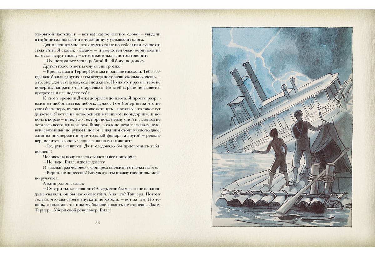 This book is about the unforgettable adventures of Huckleberry Finn, a brave, resilient, very kind street boy and his faithful friend Tom Sawyer. Together the boys get into the most difficult situations, where they show their ingenuity, nobility and go against all to protect the offended. Favorite heroes, exciting adventures that you want to return to again and again!