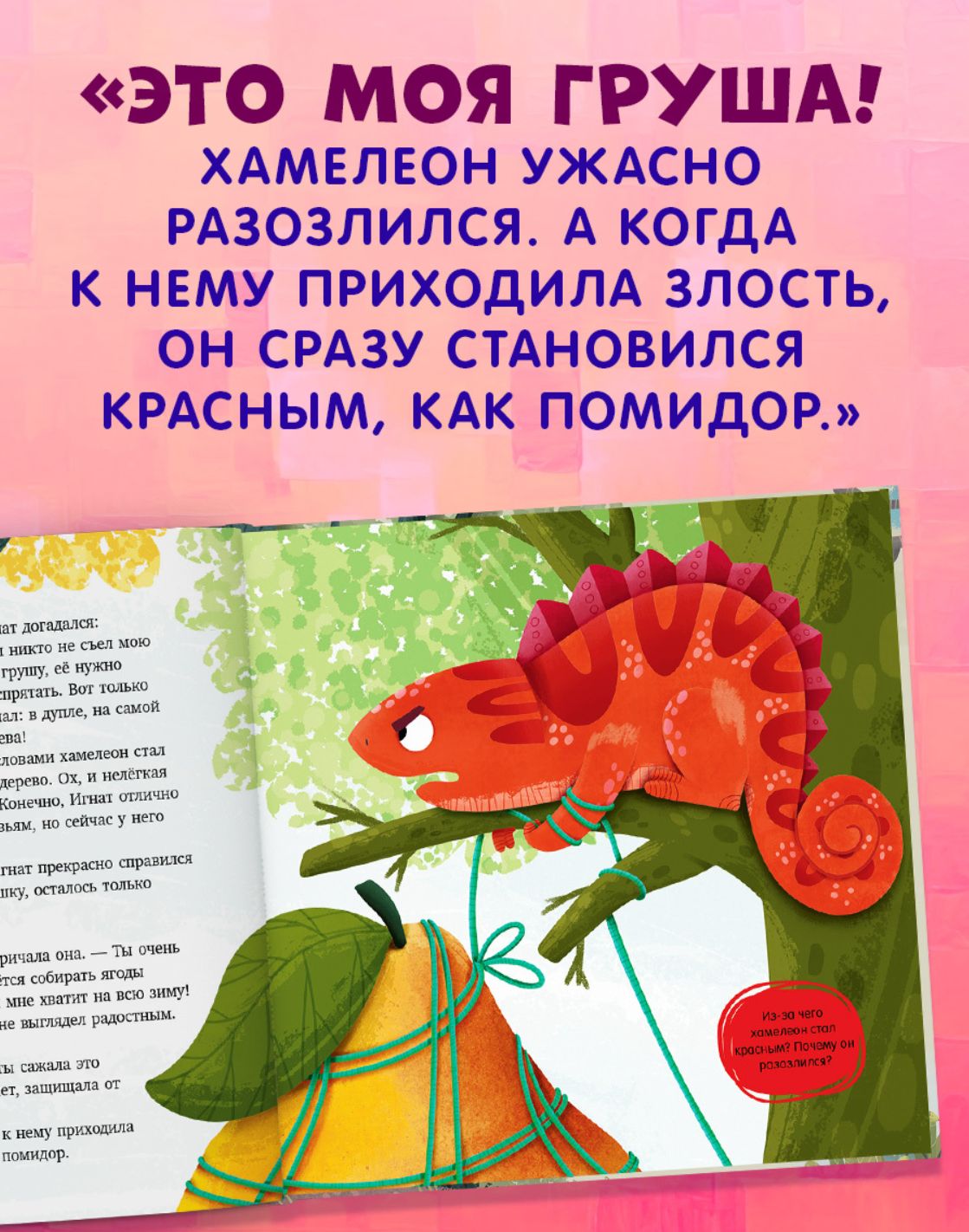 The educational story "Ignat the Chameleon and the Incredible Pear" from Clever Books with vibrant illustrations will appeal to parents looking for books for 3-year-olds, children's books that develop emotional intelligence, educational children's books for toddlers, children's books about animals, therapeutic children's books, and books for 5-year-olds.