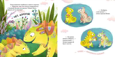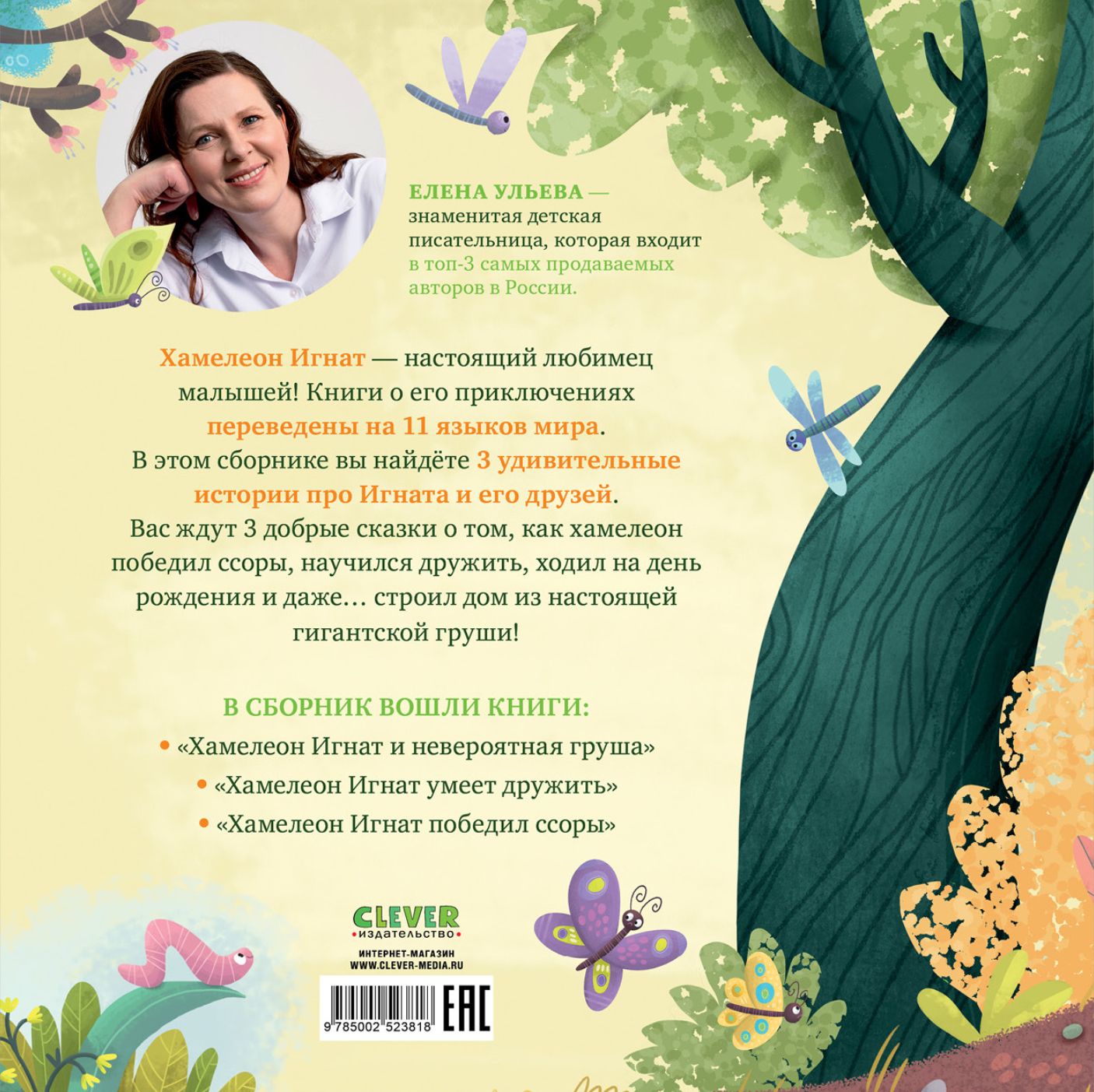 The book for toddlers, "Ignat the Chameleon and the Incredible Pear," by renowned children's author Elena Ulieva, is a collection of three heartwarming tales about how a chameleon overcame arguments, learned to make friends, attended a birthday party, and even... built a house out of a real giant pear!