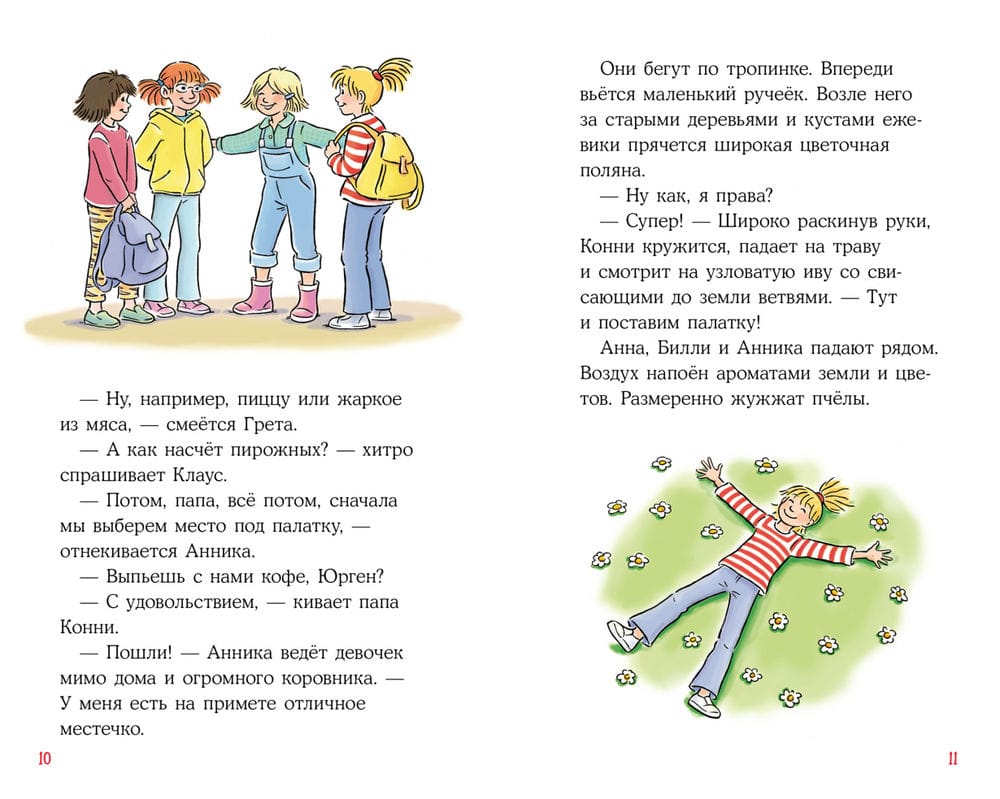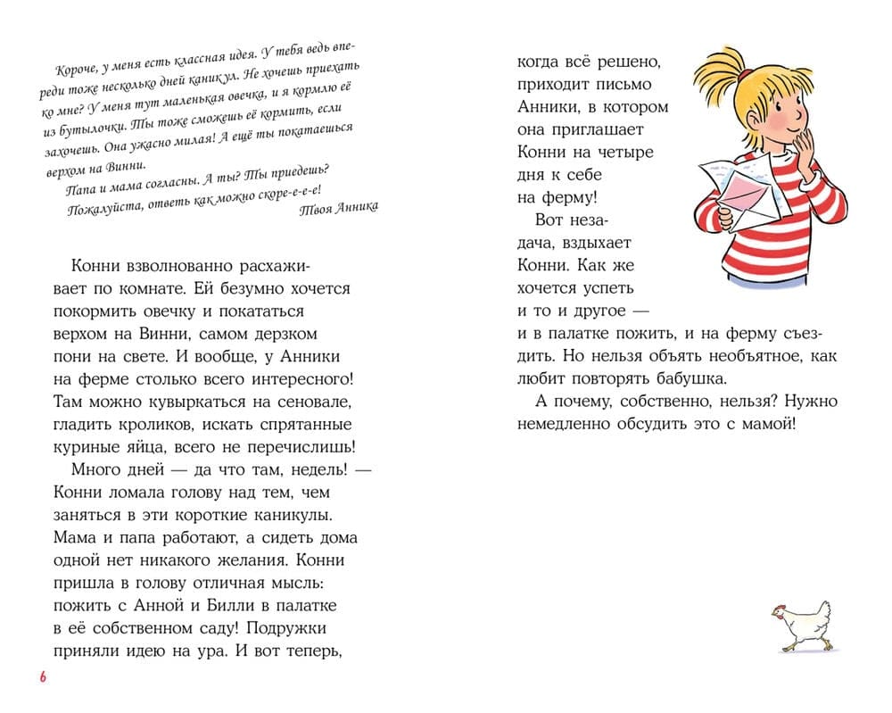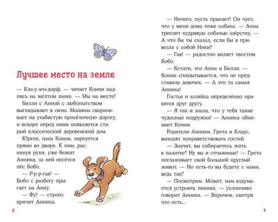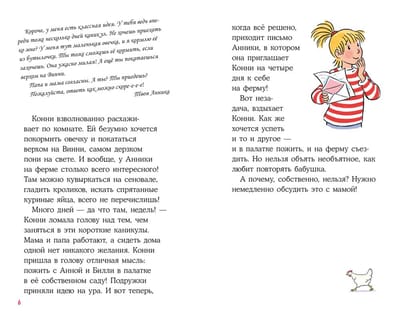 Connie and her school friends Anna and Billy go to visit Annika, who lives on a big farm: they have cows, goats, sheep and a whole stable. The girls are in for a fun day, unless the neighborhood boys spoil everything. The story about vacations, the confrontation between boys and girls and the victory of friendship reads easily and with pleasure. Parents will remember the books of their childhood, and children will recognize familiar situations in the adventures of the characters.