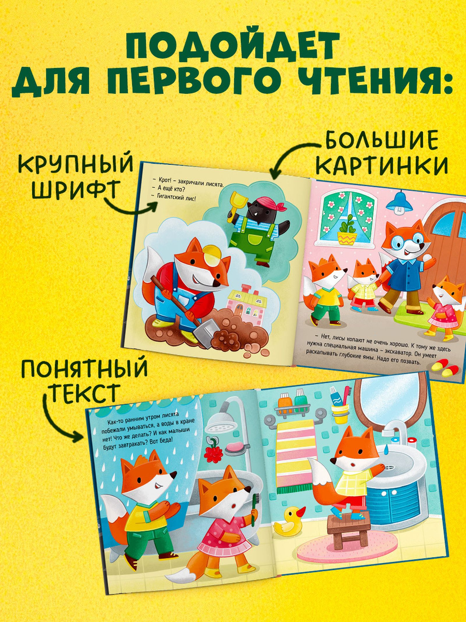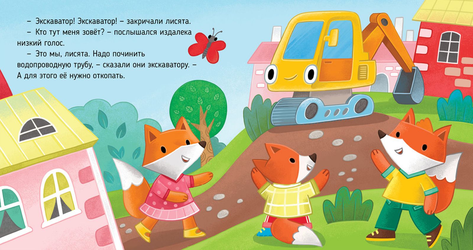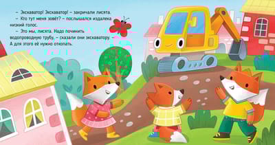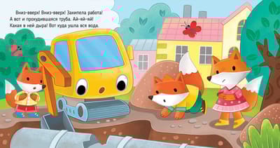 One early morning, the foxes ran to wash themselves, but there was no water in the tap! What should they do? Who will help the kids? A useful machine, an excavator, comes to the rescue. It digs a large hole, replaces a broken pipe, and tells the foxes how it and other machines work at a construction site.