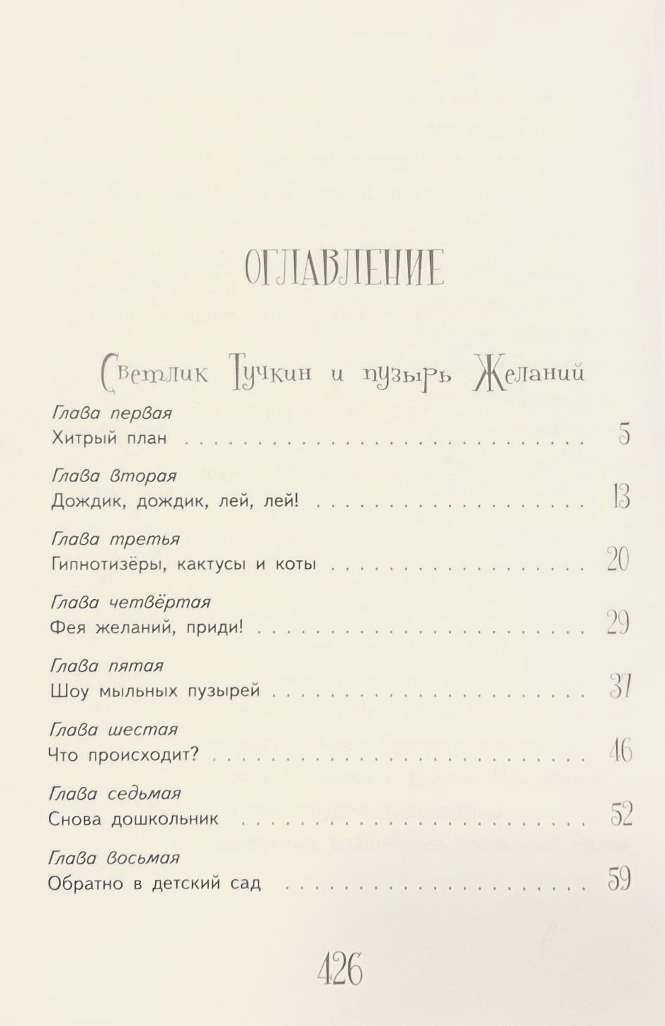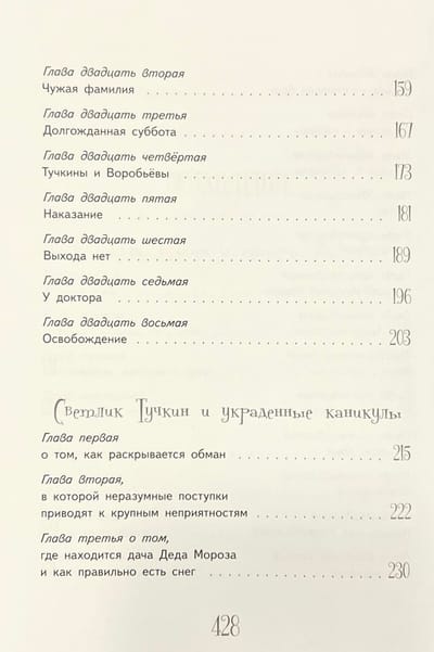 In the collection The Adventures of Svetlik Tuchkin, CompassGuide Publishing House has combined two novels about first-graders - Svetlik Tuchkin and the Wishing Bubble and Svetlik Tuchkin and the Stolen Vacation. Fascinating stories, accurate psychological details, unusual plots and light humor make Victoria Lederman's books popular among children and adults. And this collection is no exception.