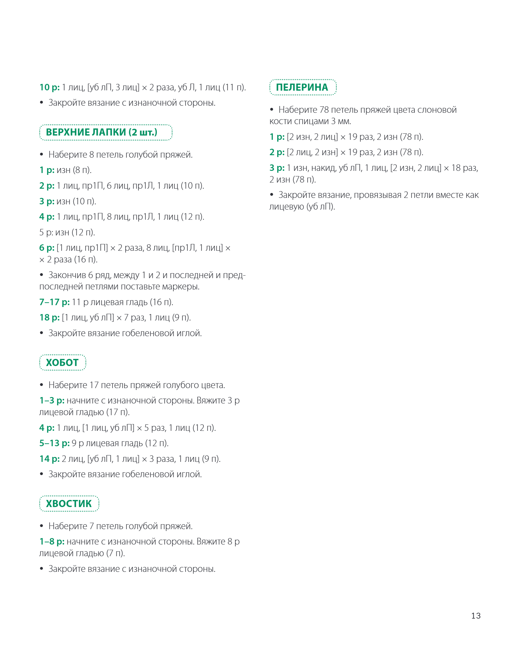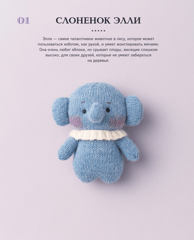 Famous Korean knitter Hyejeong Jeon presents 20 toys that are simply impossible to resist! They win hearts literally at first sight. And they are also very easy to make! Having learned to knit one, you can easily knit a whole group of forest friends. At the same time, the details give each animal a unique character and individuality, and no one will even guess that they have the same base! And having mastered simple shapes, you can easily knit little people: Robin and Santa Claus! All projects are accompanied by detailed row-by-row descriptions, as well as a color scheme. If you have never knitted toys, this book is definitely for you!