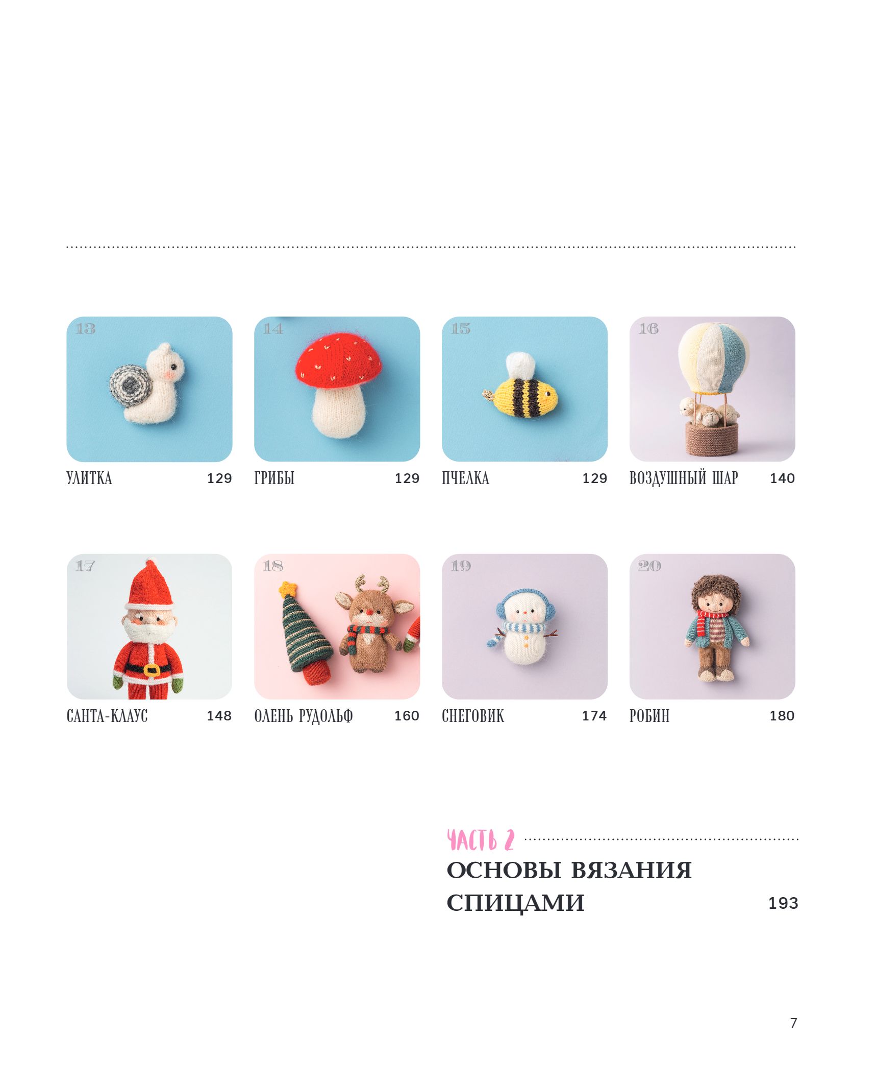 - 20 knitting projects on knitting needles: little people, animals and even objects.