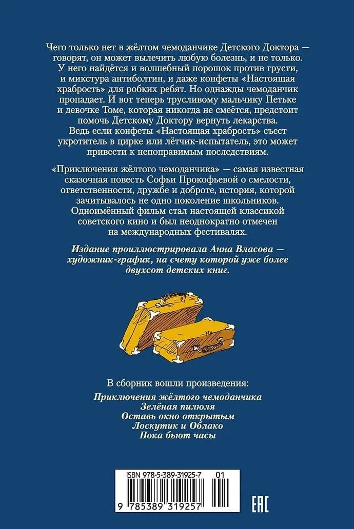 "The Adventures of the Yellow Suitcase" is Sofia Prokofieva's most famous fairy tale about courage, responsibility, friendship, and kindness, a story that has been devoured by generations of schoolchildren. The film of the same name has become a true classic of Soviet cinema and has been repeatedly recognized at international festivals. In addition to "The Adventures of the Yellow Suitcase," the collection also includes other popular works by the author.