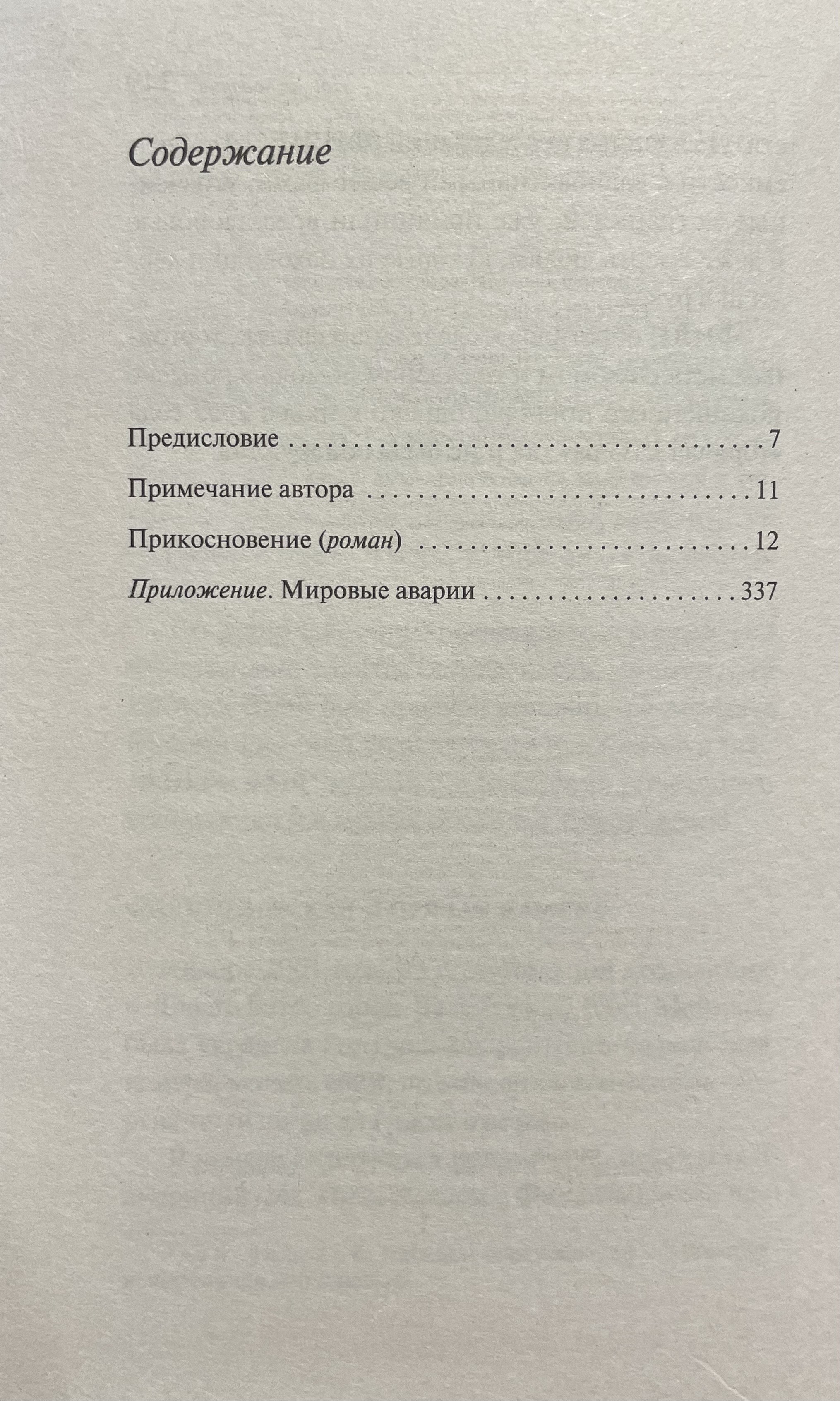 The novel "Touch" is about a married couple whose lives changed in an instant. Sculptor Barney Stark and his wife Karen accidentally spread radioactive dust throughout the city. Wherever they went, they brought illness and death with them. But their physical suffering from the radiation they were exposed to was incomparable to their mental anguish and inner turmoil. The couple faced alienation from family and friends, aggression from local residents, and Karen's unexpected pregnancy, something they had dreamed about for years.