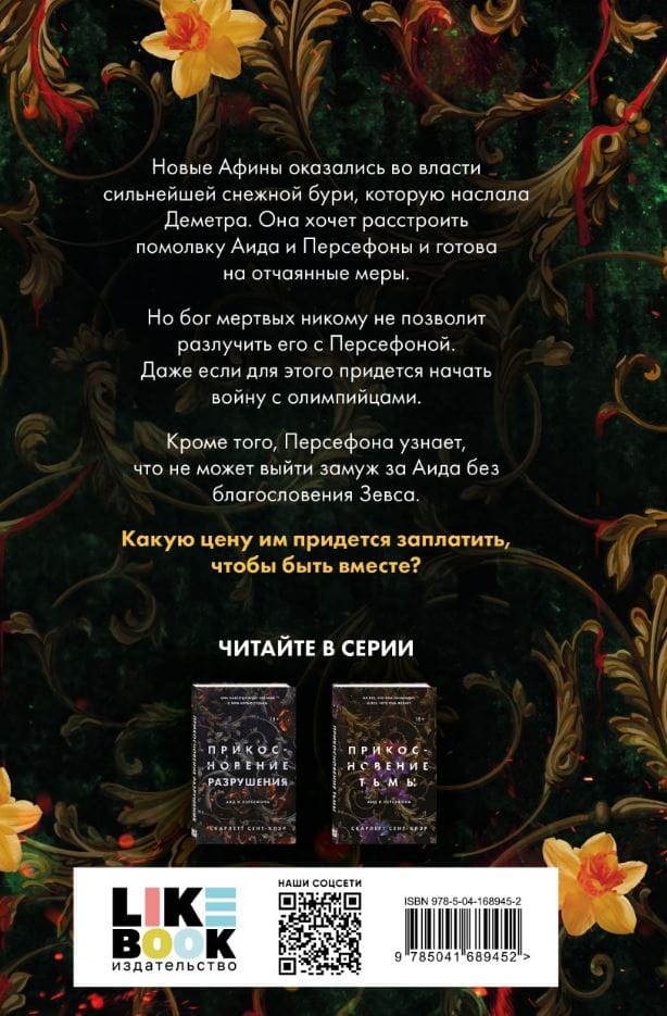 "Touch of Evil" is the third book of the romantic fantasy cycle, which is the author's interpretation of the story of "Hades and Persephone". A magical world where ancient Greek gods live among humans. New Athens is at the mercy of the strongest snowstorm that Demeter has sent. She wants to upset the engagement of Hades and Persephone and is ready for desperate measures. But the god of the dead will not allow anyone to separate him from Persephone. Even if it means starting a war with the Olympians. In addition, Persephone learns that she cannot marry Hades without Zeus' blessing. What price will they have to pay to be together?